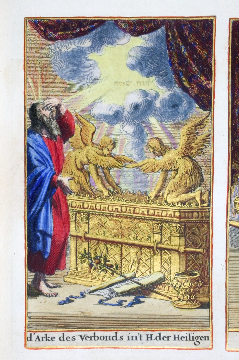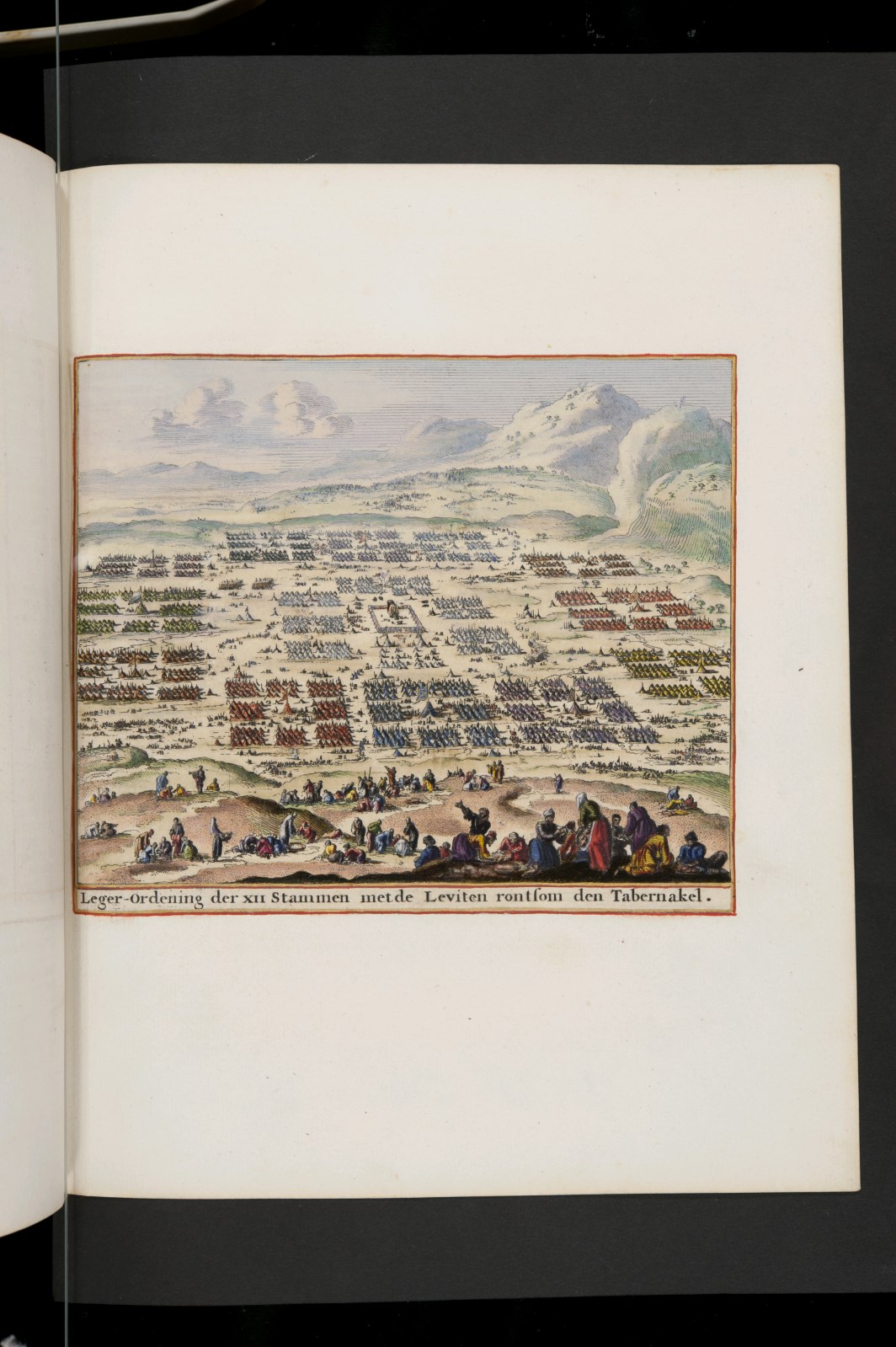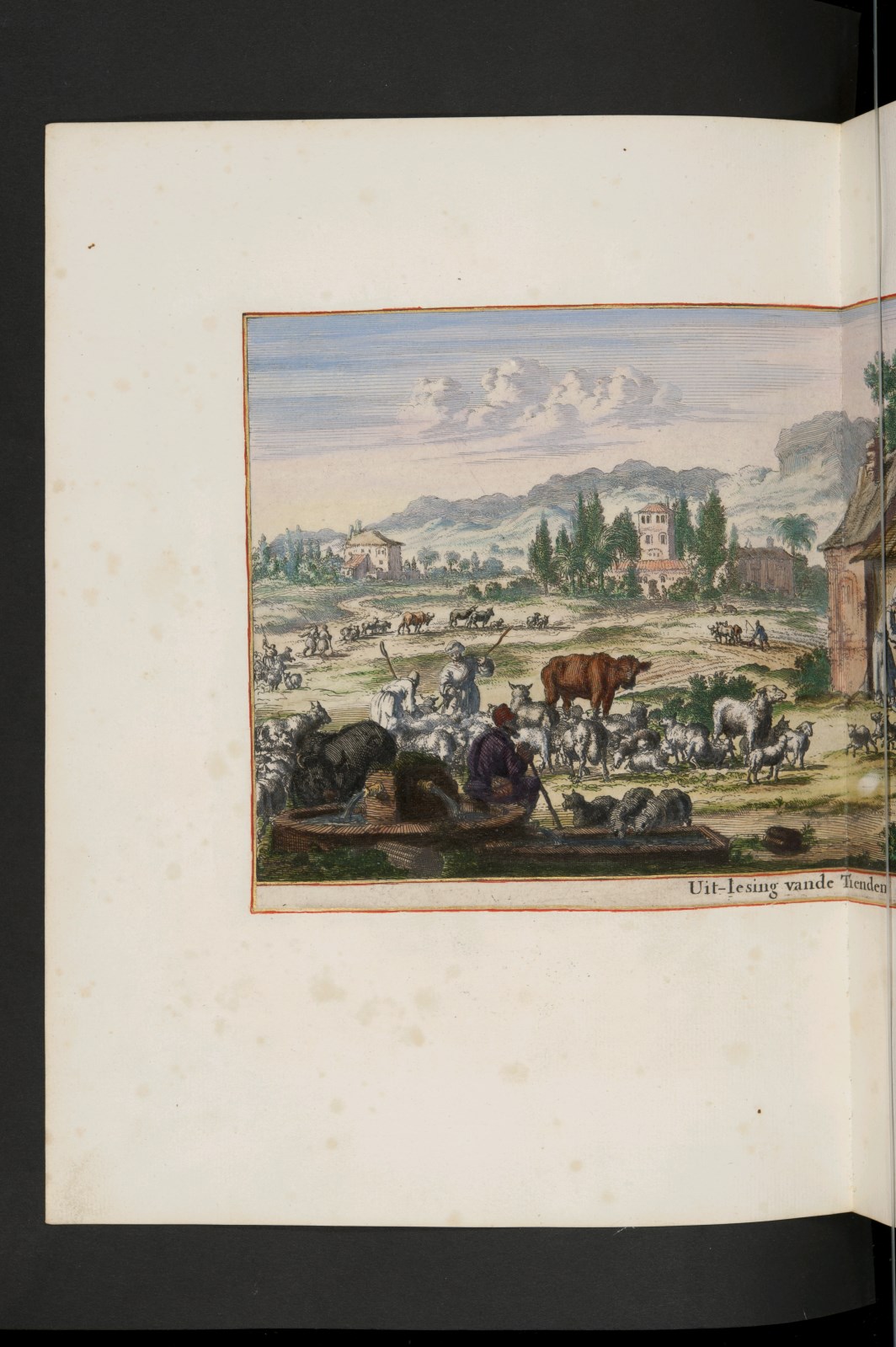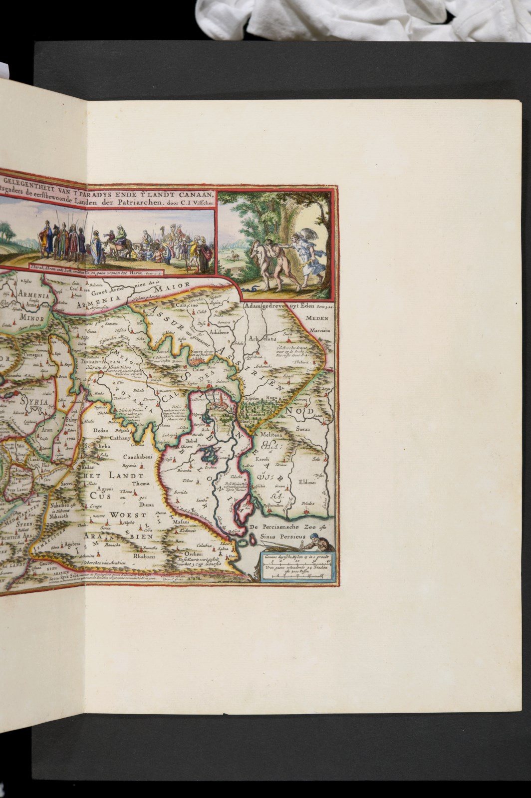 Het boek heeft 150 ingekleurde gravures van Hendrik Goltzius, Jacob Matham, de Mariaprenten van Nicolaas Visscher en anderen. Alle illustraties zijn handgekleurd en goudgehoogd door Dirk Jansz van Santen en de snede is verguld. De bruine segrijn leren band die later zwart is geverfd, is versierd met een dubbel blind lijnkader op het voor- en ...
