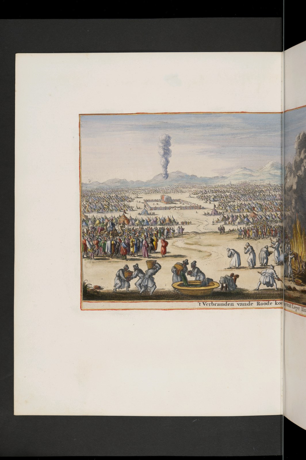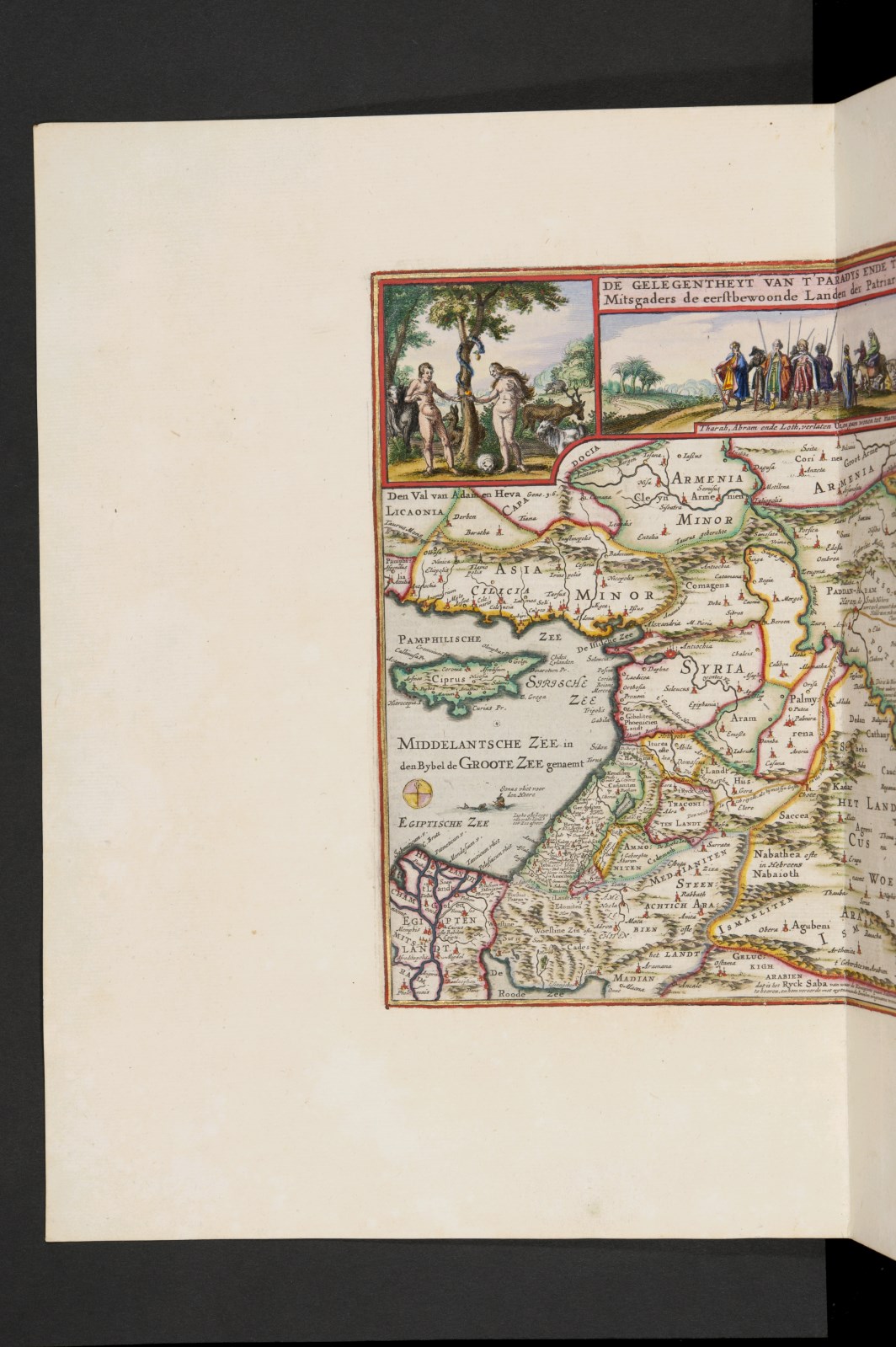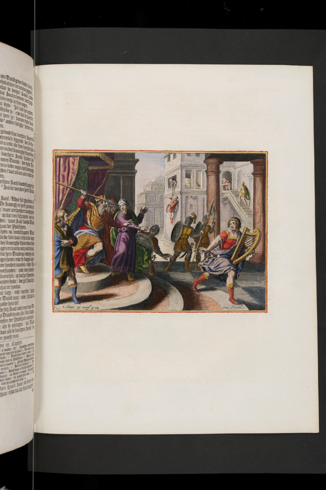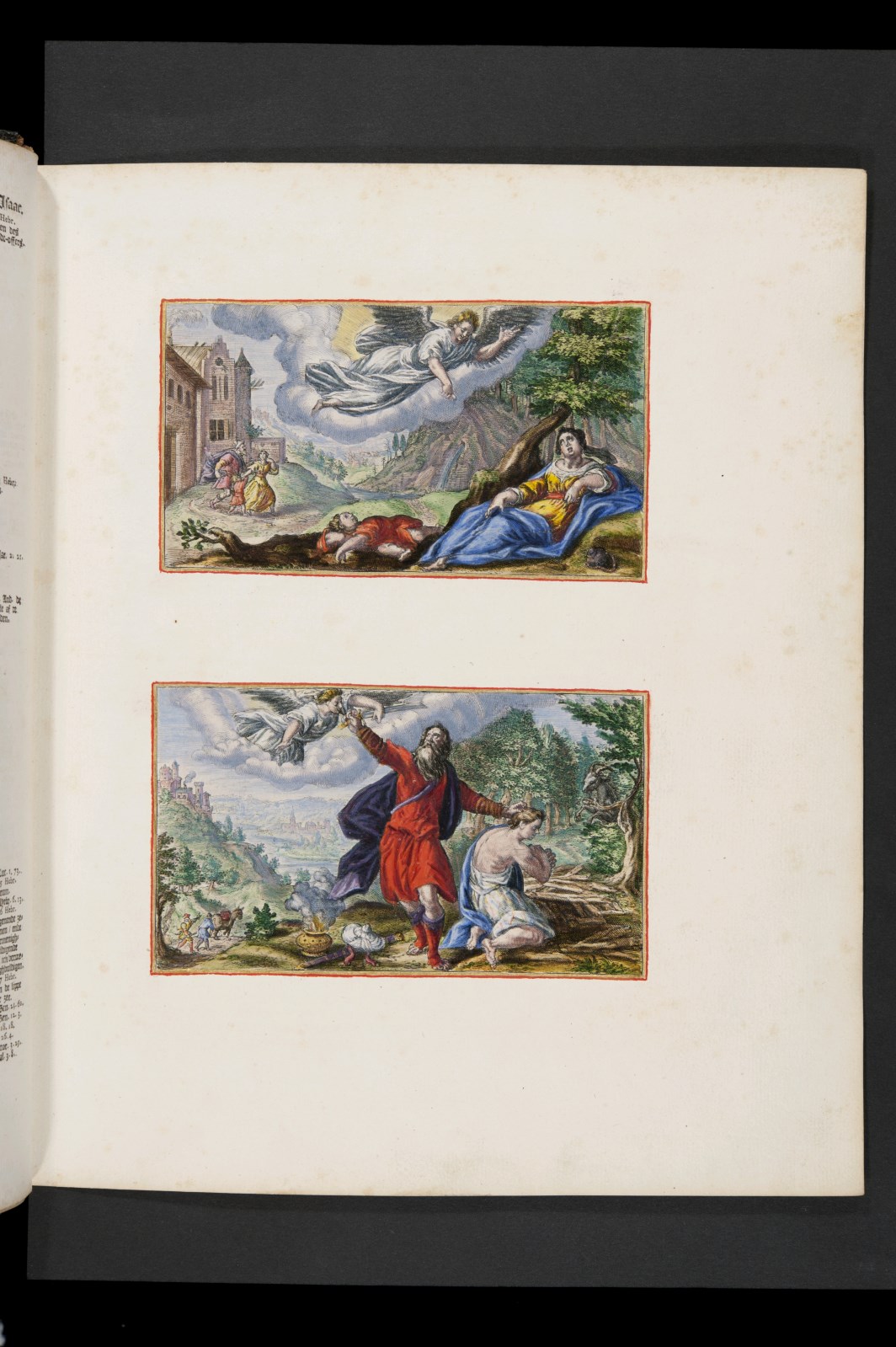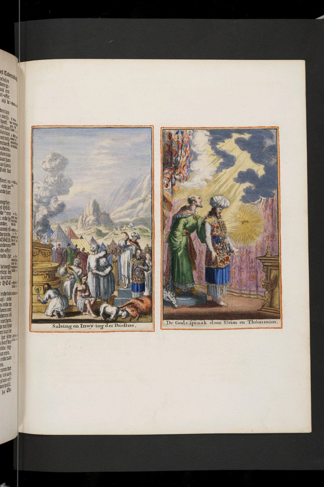 Het boek heeft 150 ingekleurde gravures van Hendrik Goltzius, Jacob Matham, de Mariaprenten van Nicolaas Visscher en anderen. Alle illustraties zijn handgekleurd en goudgehoogd door Dirk Jansz van Santen en de snede is verguld. De bruine segrijn leren band die later zwart is geverfd, is versierd met een dubbel blind lijnkader op het voor- en ...