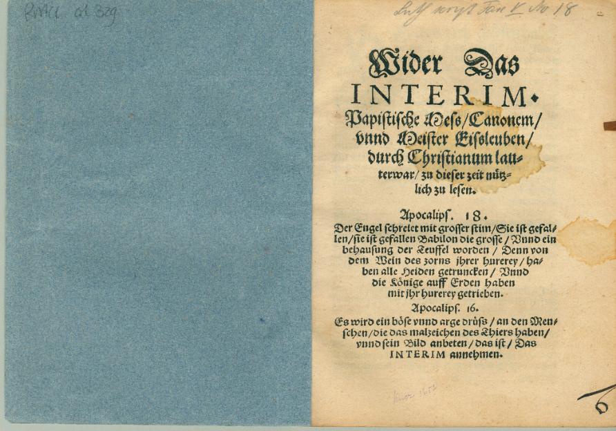 Wider das INTERIM. Papistische Mess, Canonem, vnnd Meister Eissleuben