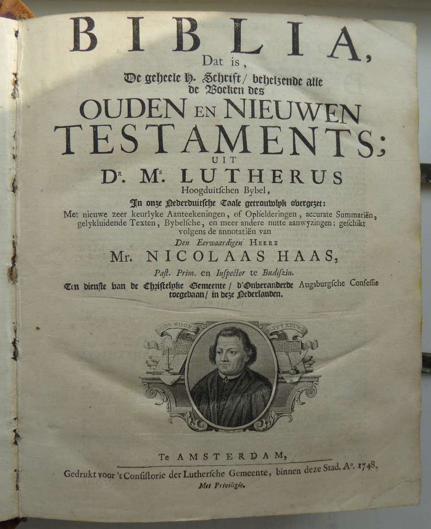 Lutherbijbel, Biblia, dat is: De geheele H. Schrift, behelzende alle de boeken des Ouden en Nieuwen Testaments uit Ms. Lutherus Hoogduitschen bijbel in onze nederduitsche taale getrouwlijk overgezet, tussen het O.T en N.T. het boek De Propheeten