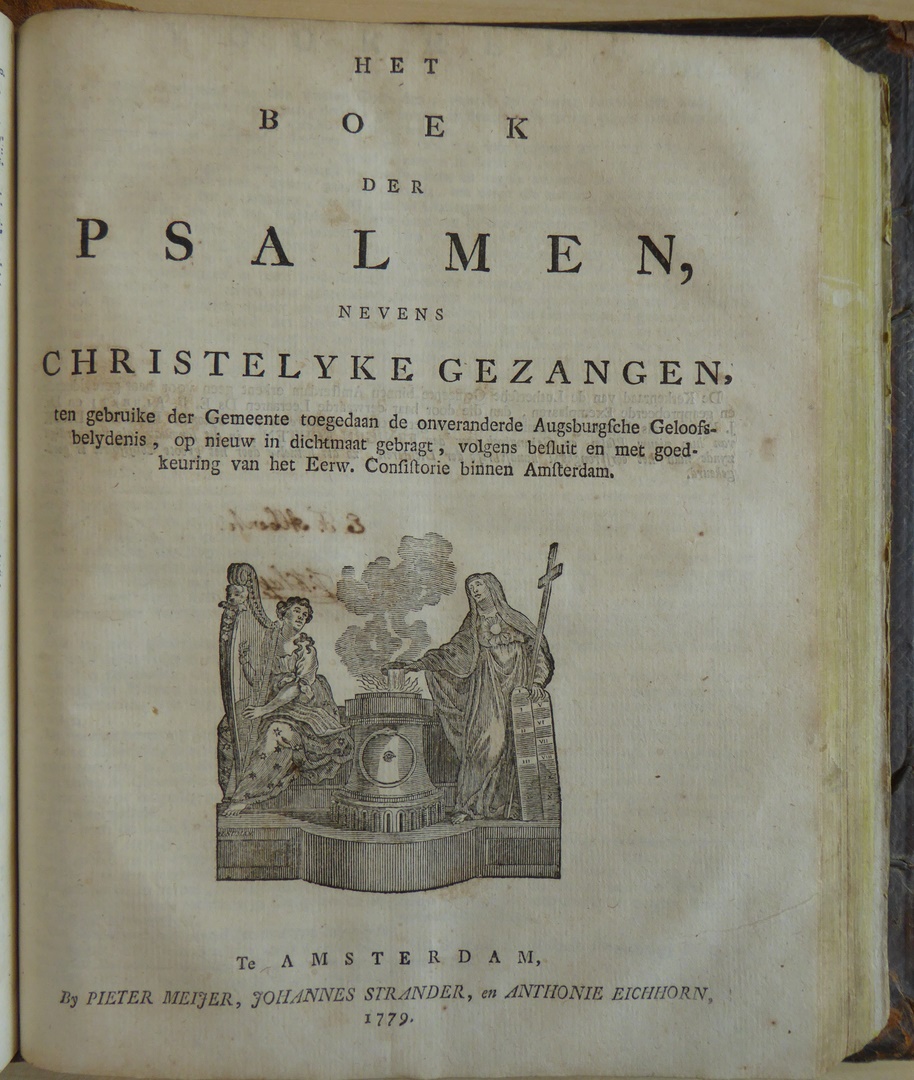 Het boek der psalmen, nevens christelijke gezangen, ten gebruike der Gemeente toegedaan de onveranderde Augsburgsche Geloofsbelijdenis, op nieuw in dichtmaat gebracht, volgens besluit en met goedkeuring van het Eerw. Consistorie binnen Amsterdam. Hierachter negen bijlagen in Kerkboek, waarbij de Kleine Catechismus van Maarten Luther.