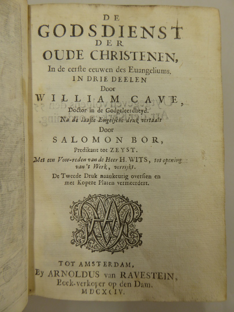 De godsdienst der oude christenen, in de eerste eeuwen des evangeliums in drie delen door William Cave doctor in de godgeleerdheyd. Na de laaste Engelsche druk vertaalt door Salomon Bor, predikant tot Zeyst. Met een Voor-reden van de Heer H. Wits, tot opening van 't werk, verrijkt.