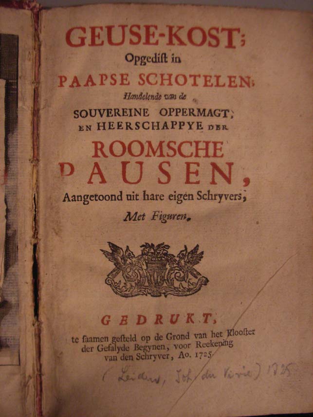 Geuse-kost; opgedist in paapse schotelen; handelende van de souvereine oppermagt, en heerschappye der Roomsche pausen, aangetoond uit hare eigen schryvers [...]