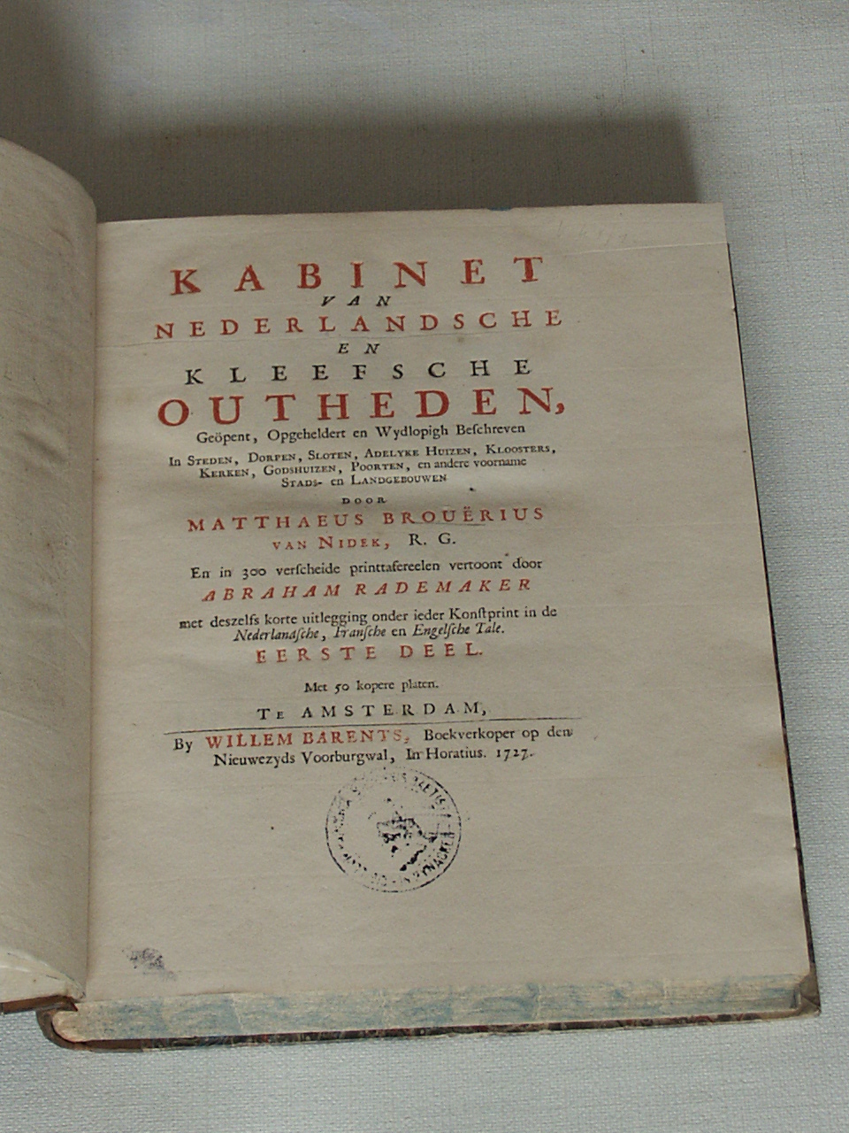 Kabinet van Nederlandsche en Kleefsche outheden : bestaande in steden, dorpen, sloten, adelyke huysen, kloosters, kerken, godshuysen, poorten, en andere voornaame stadts- en landtgebouwen, deel I