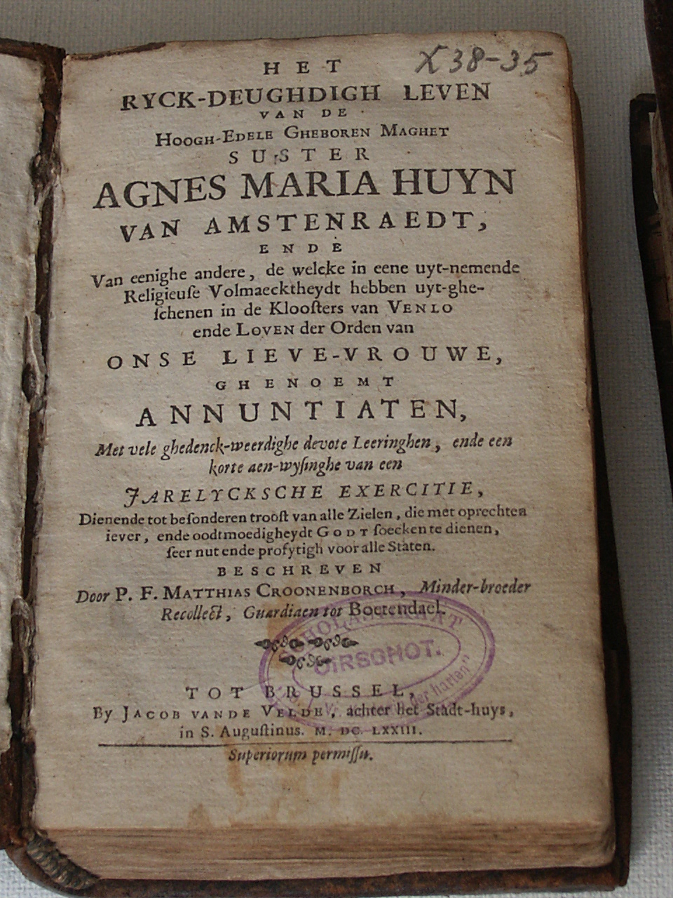 Het ryck-deughdigh leven van de hoogh-edele gheboren maghet suster Agnes Maria Huyn van Amstenraedt, ende van eenighe andere, de welcke in eene uyt-nemende religieuse volmaecktheydt hebben uyt-gheschenen in de kloosters van Venlo ende Loven der Orden van Onse Lieve-Vrouwe, ghenoemt Annuntiaten, met vele ghedenck-weerdighe devote leeringhen, ende een korte aenwysinghe van een jarelycksche exercitie [...] ...