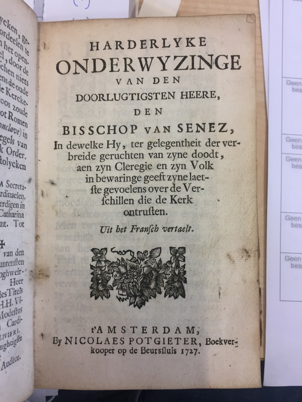 Harderlyke onderwyzinge van den doorluchtigsten heere, den bisschop van Senez [...] en zijn volk in bewaringe geeft zyne laetste gevoelens over de verschillen die de kerk ontrusten.