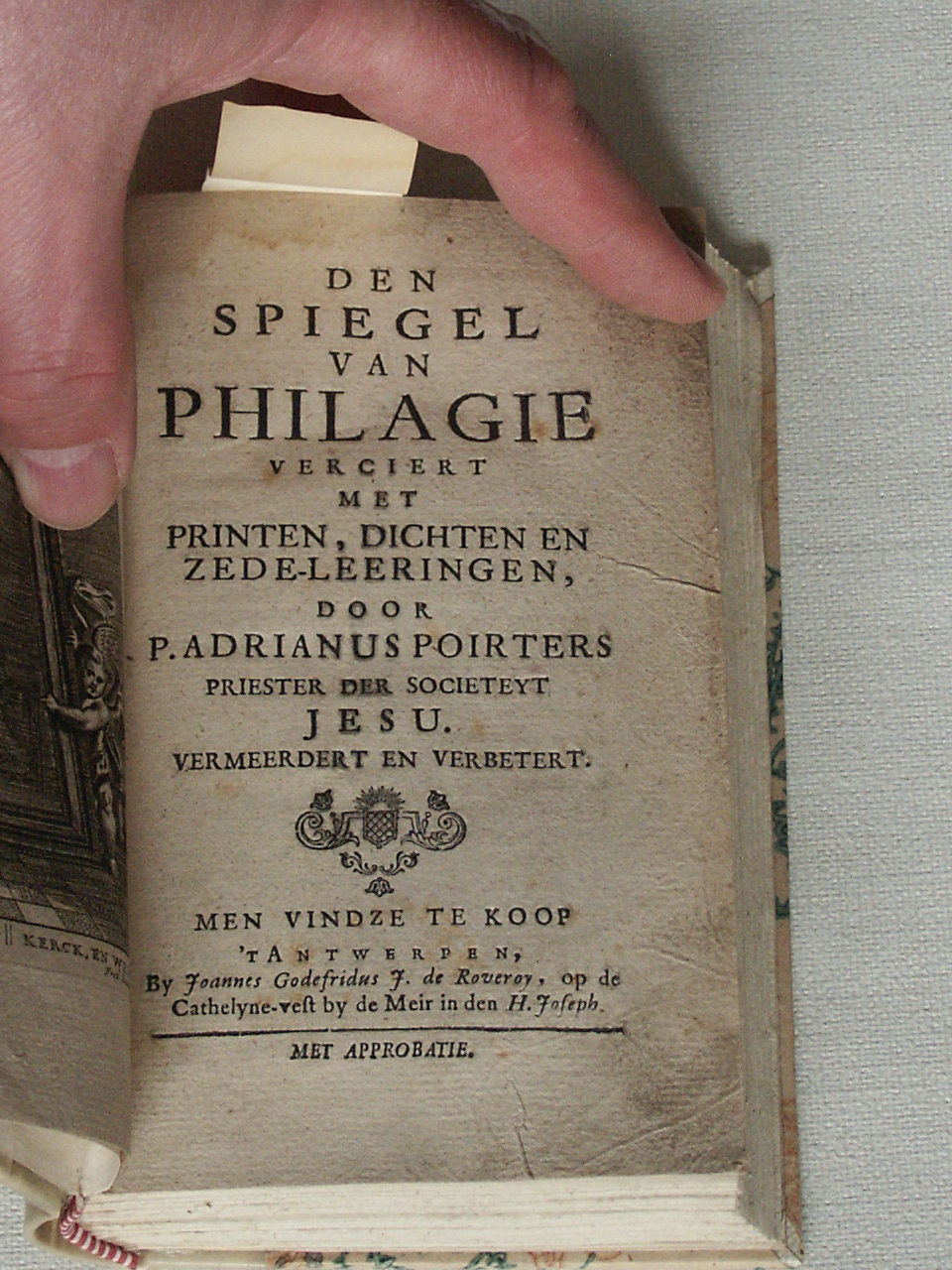 Den spiegel van philagie verciert met printen, dichten en zede-leeringen, door p. Adrianus Poirters preister der societeyt Jesu. Vermeedert en verbetert.