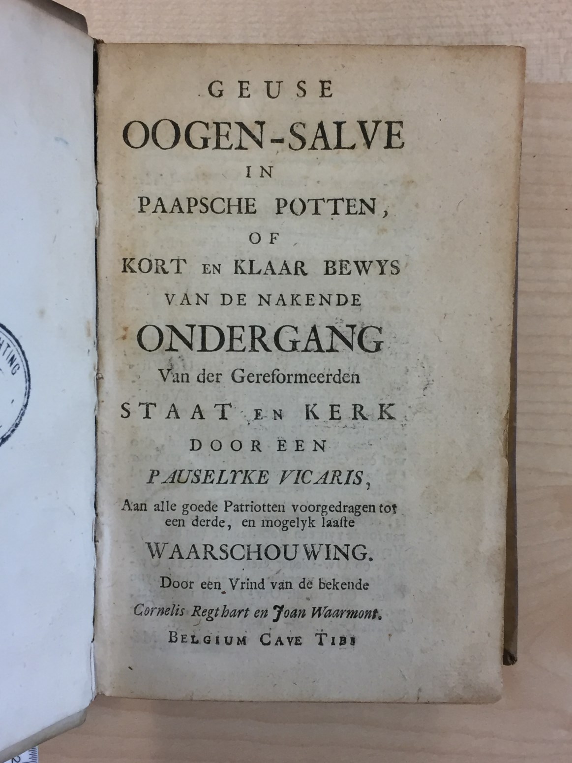 Geuse oogen-salve in paapsche potten, of Kort en klaar bewys van de nakende ondergang van der gereformeerden staat en kerk door een pauselyke vicaris, aan alle goede patriotten voorgedragen tot een derde, en mogelyk laaste waarschouwing.
