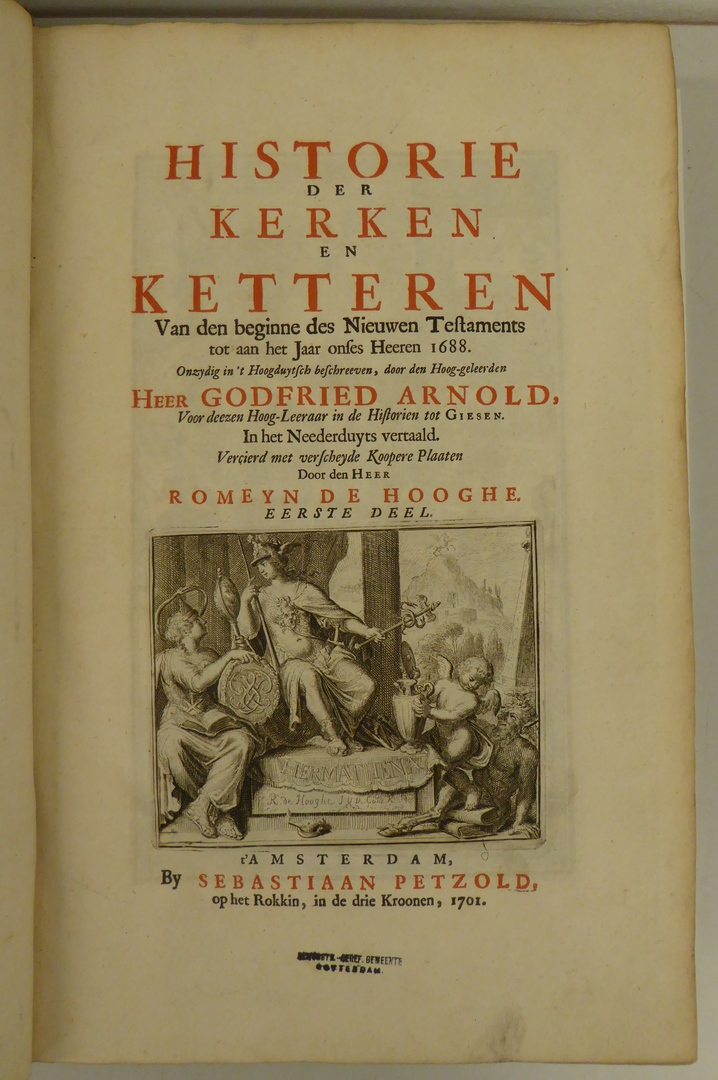 Historie der kerken en ketteren van den beginne des Nieuwen Testaments tot [...] 1688. Onzydig in 't Hoogduytsch beschreeven [...] In het Neederduyts vertaald. Vercierd met verscheyde koopere plaaten door [...] Romeyn de Hooghe. Deel I