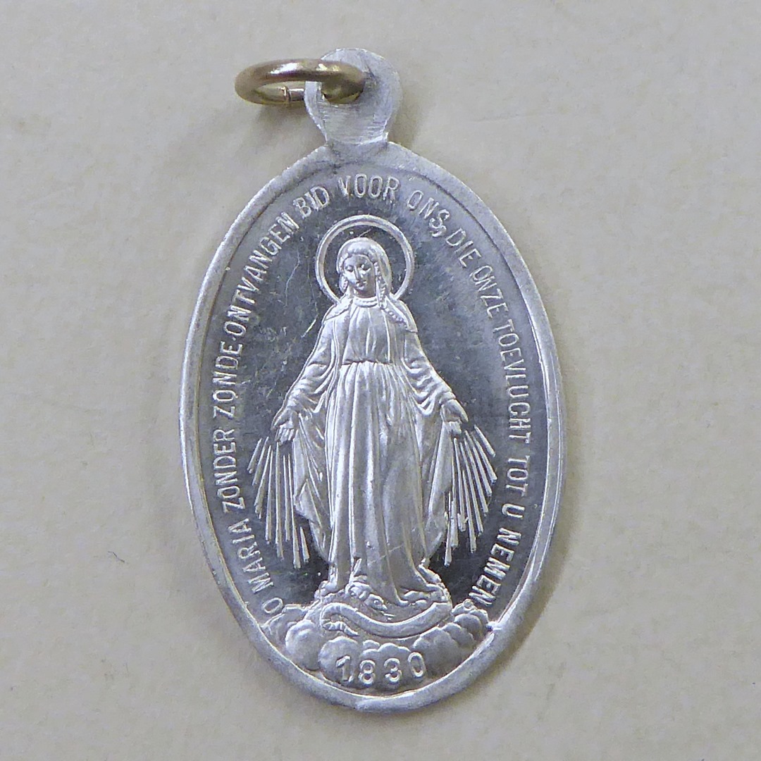 Medaille, zg. miraculeuze medaille met Maria Immaculata de slang vertrappend, kz. Mariamonogram