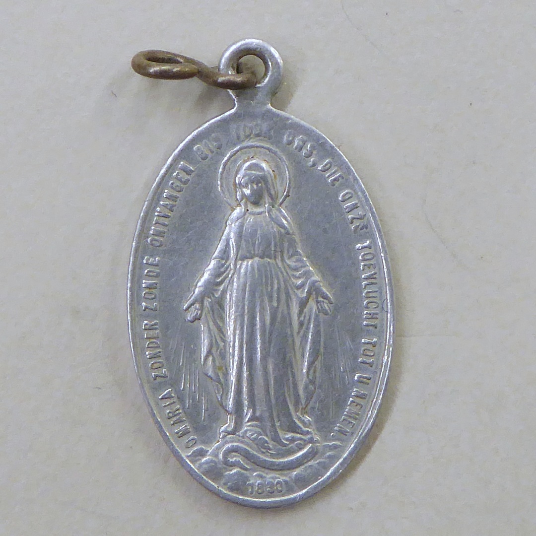 Medaille, zg. miraculeuze medaille met Maria Immaculata de slang vertrappend, kz. Mariamonogram