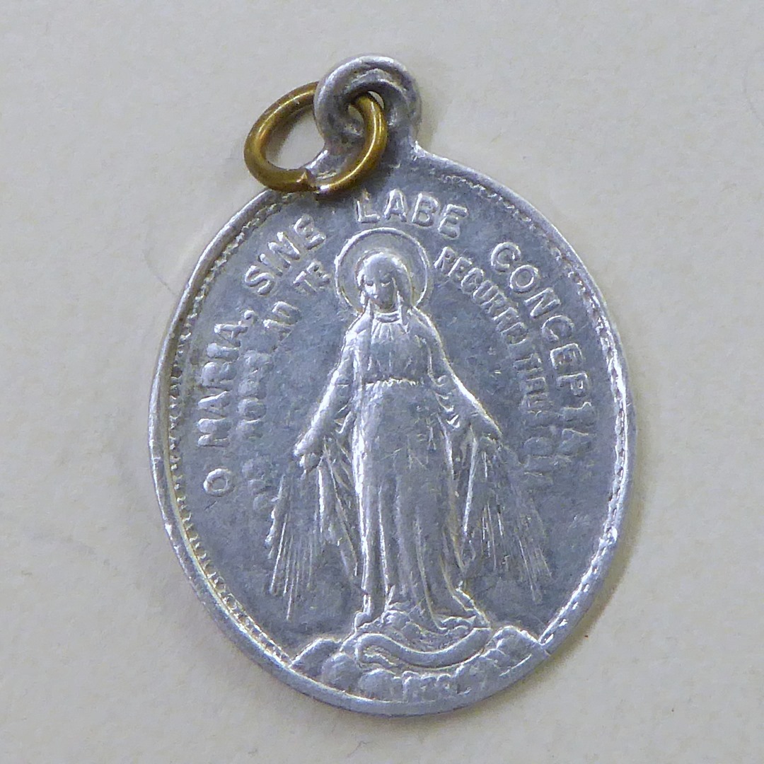 Medaille, zg. miraculeuze medaille met Maria Immaculata de slang vertrappend, kz. Mariamonogram