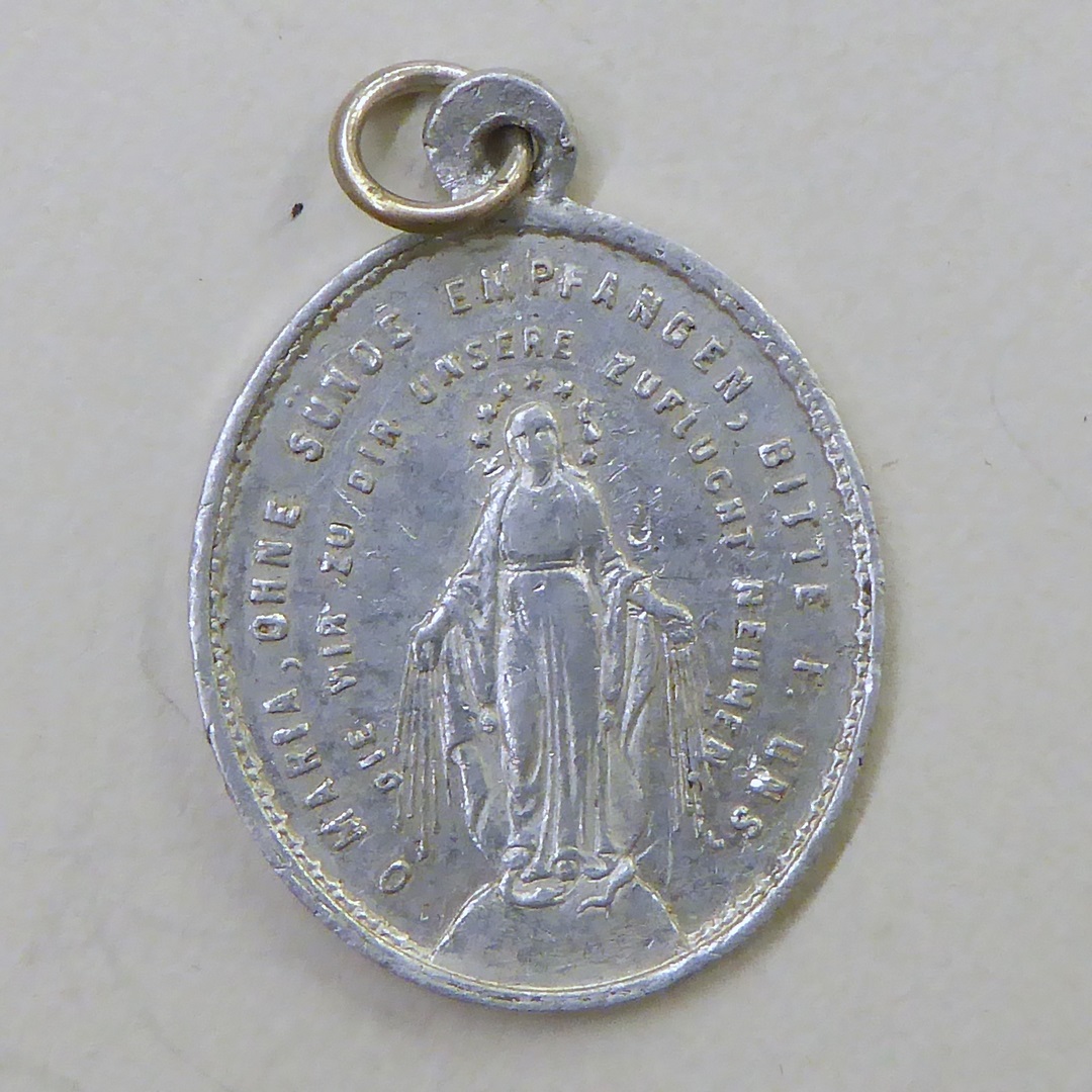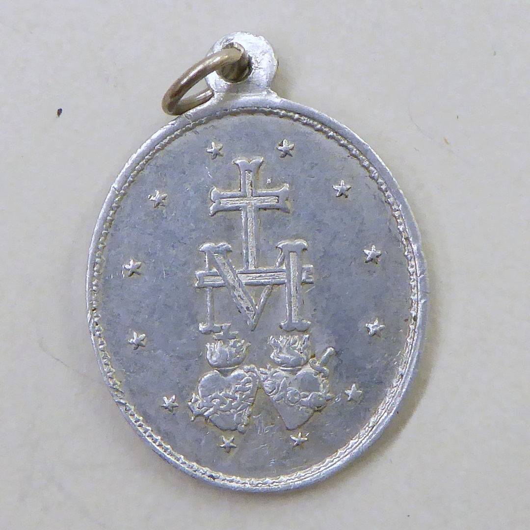 Medaille, zg. miraculeuze medaille met Maria Immaculata de slang vertrappend, kz. Mariamonogram