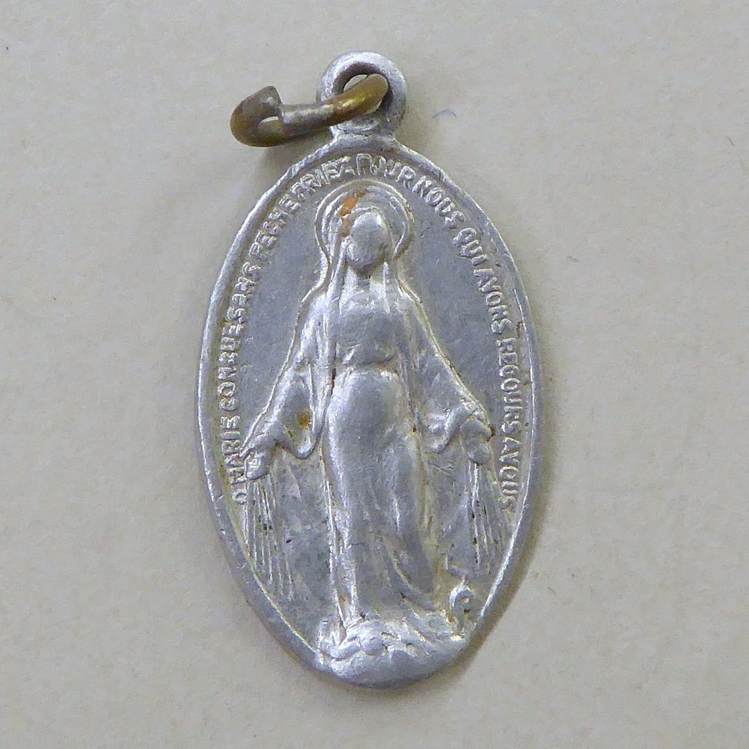 Medaille, zg. miraculeuze medaille met Maria Immaculata de slang vertrappend, kz. Mariamonogram