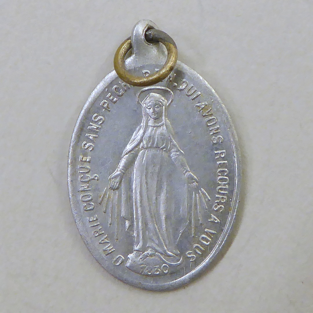 Medaille, zg. miraculeuze medaille met Maria Immaculata de slang vertrappend, kz. Mariamonogram
