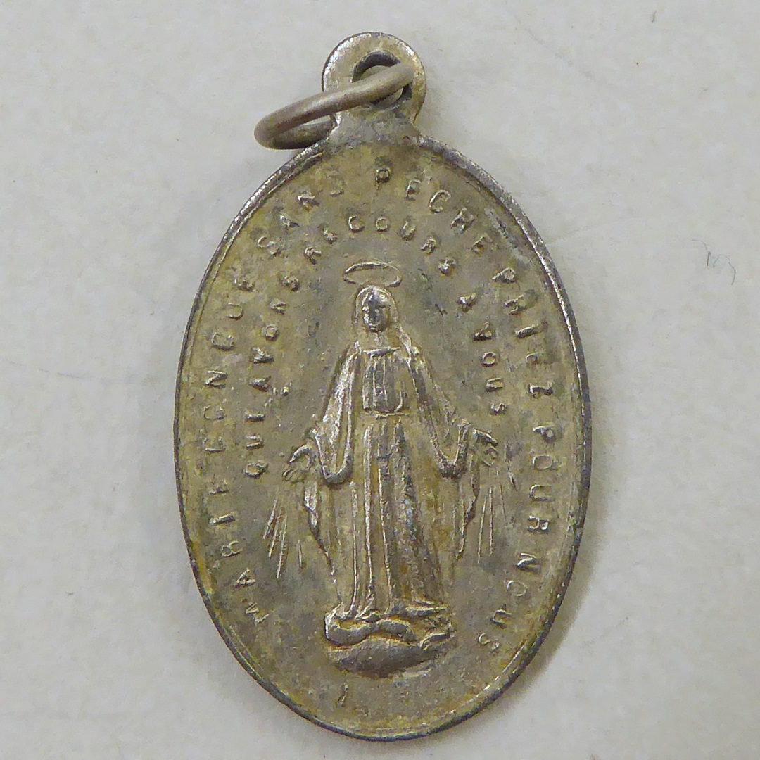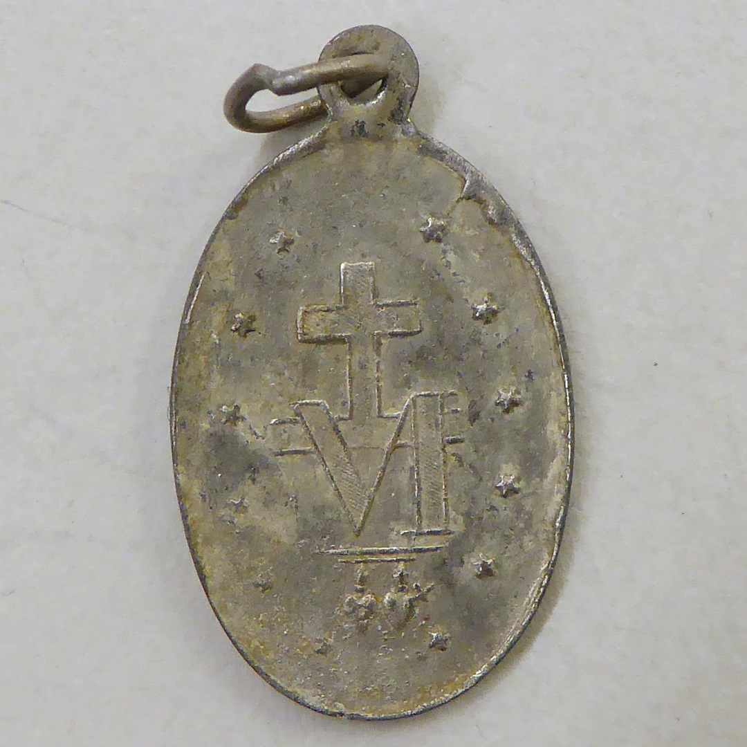 Medaille, zg. miraculeuze medaille met Maria Immaculata de slang vertrappend, kz. Mariamonogram