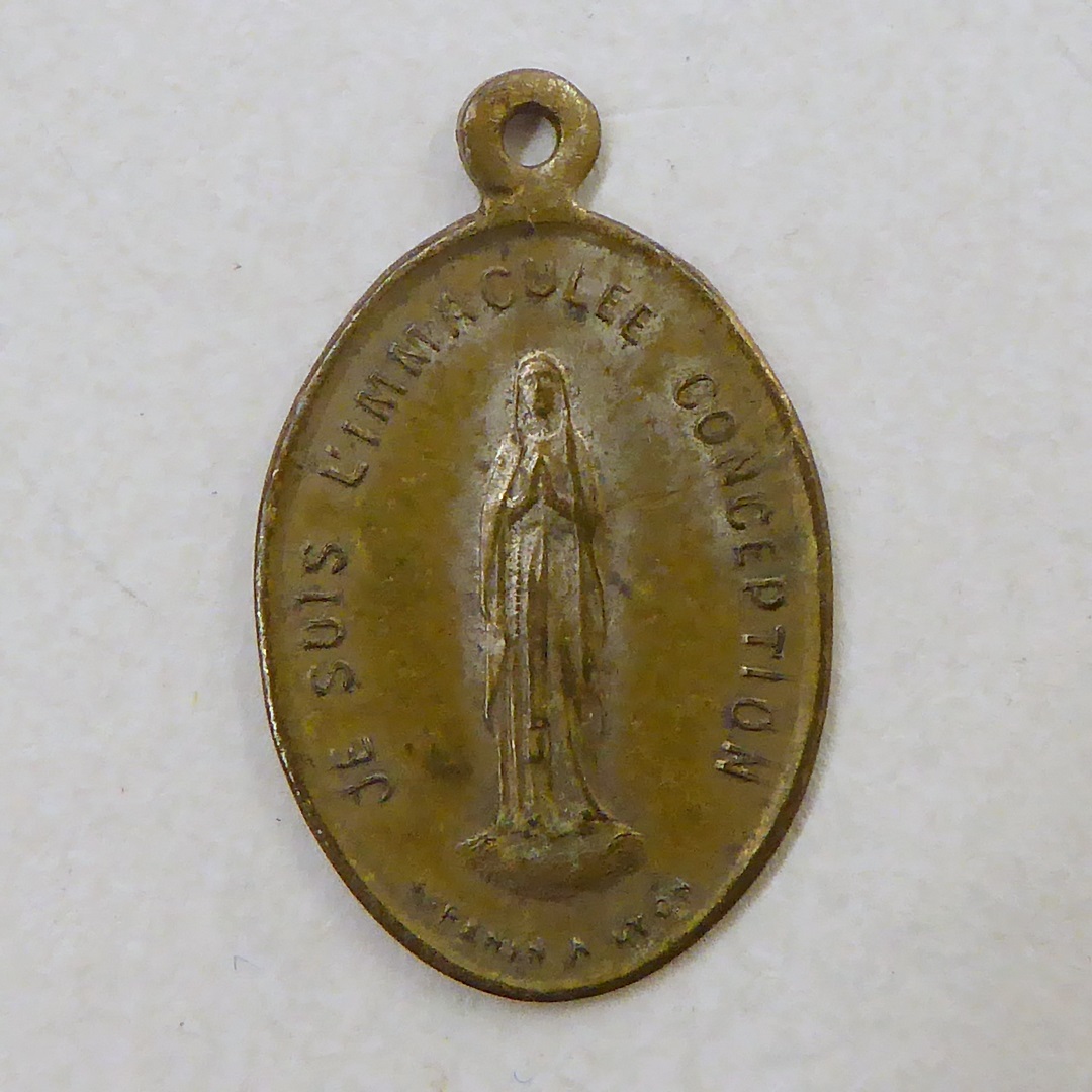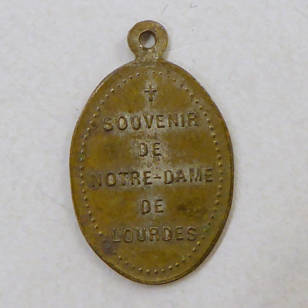 Medaille, zg. miraculeuze medaille met Maria Immaculata, kz. met "Souvenir de ... Lourdes"