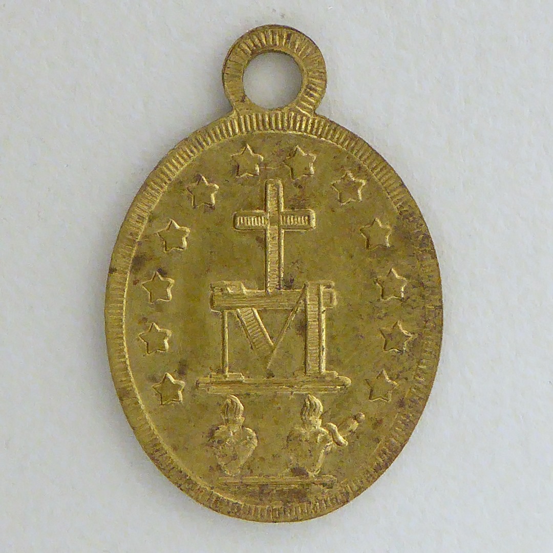 Wonderbaarlijke medaille met Maria uit wier handen stralen komen, kz. kruis op een "M"