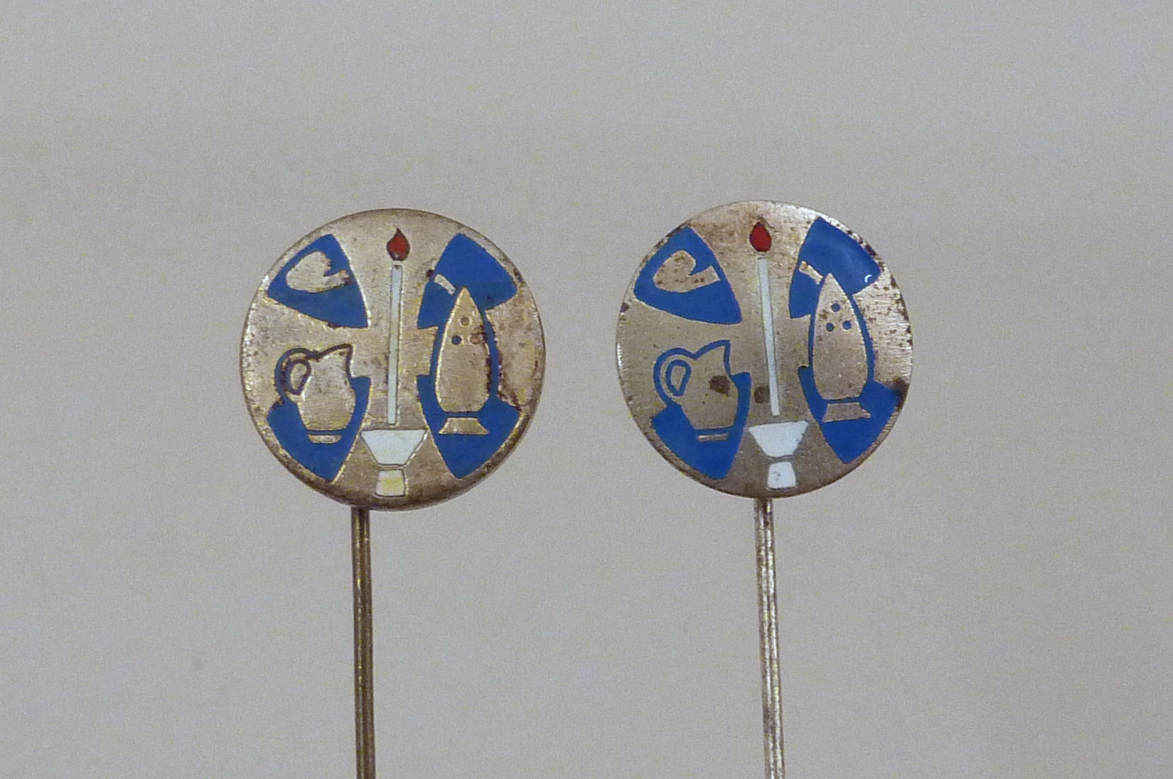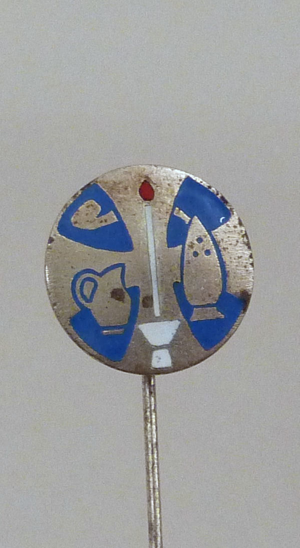 Blauw misdienaarsspeldje Katholiek 'Serviam' Brakkenstein Nijmegen met kaars in kruisnimbus