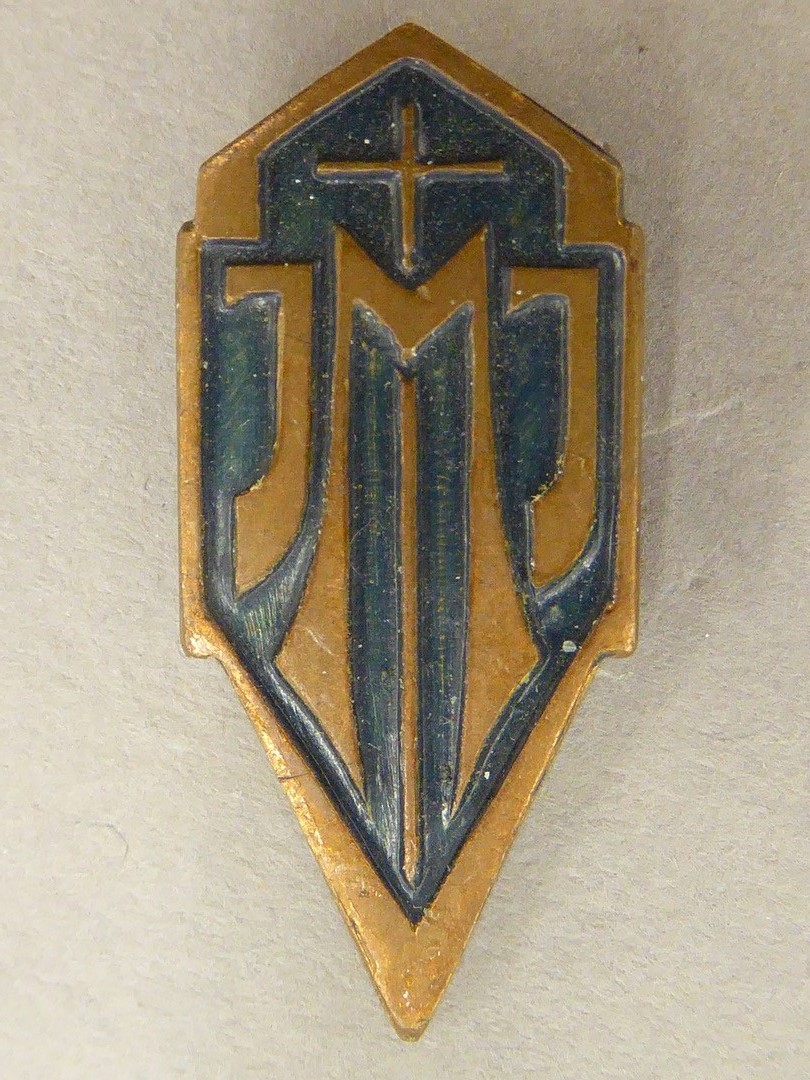 Speld met "JMJ" in reliëf voor leden van Aartsbroederschap van de H. Familie