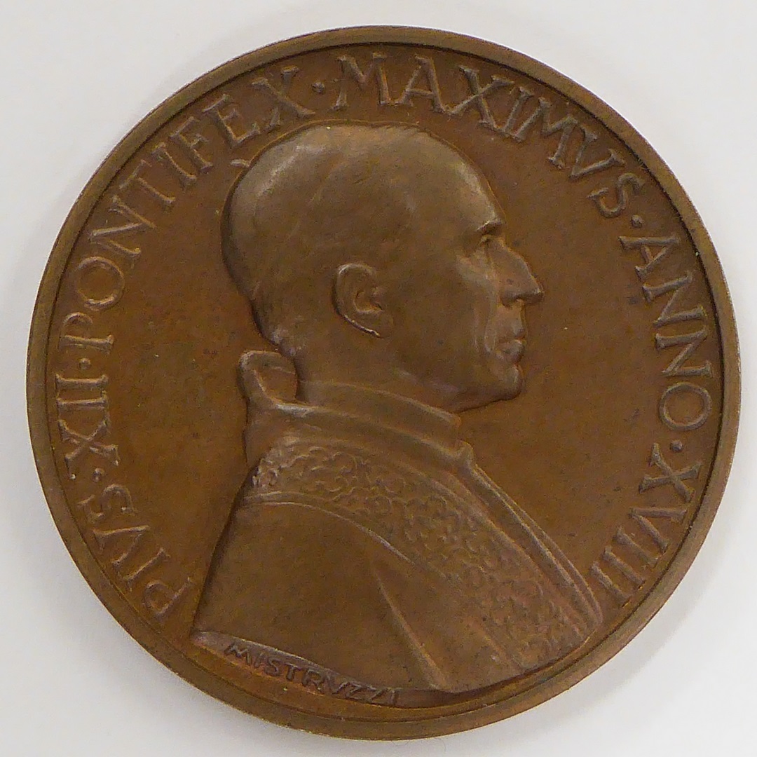 Pauspenning met portret paus Pius XII (1939-1958), kz. audiëntie op St. Pietersplein