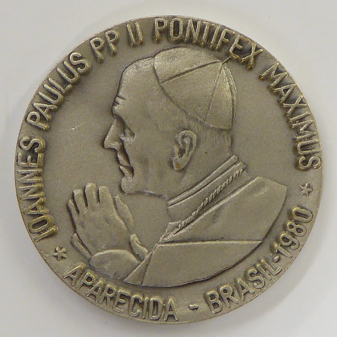 Pauspenning met portret paus Johannes Paulus II (1978-2005) t.g.v. bezoek aan Brazilië, kz. Mariakerk