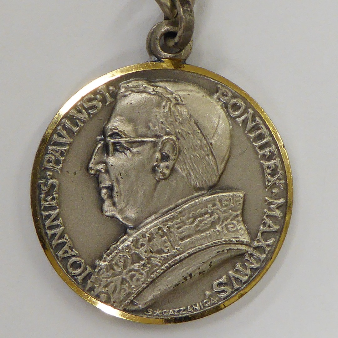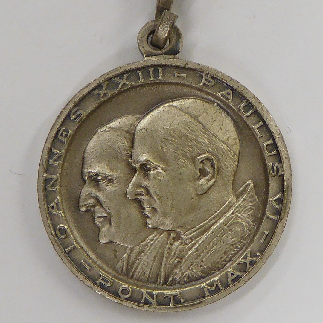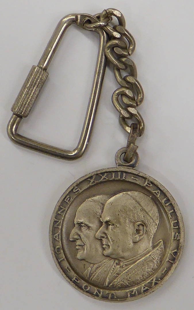 Sleutelhanger waaraan portret paus Johannes Paulus I (1978), kz. Johannes XXIII en Paulus VI