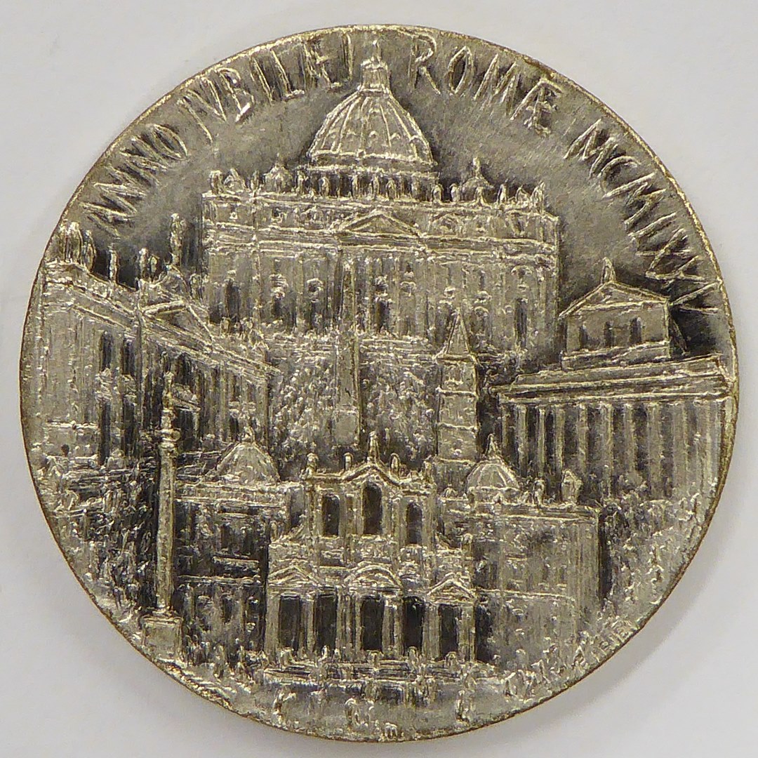Gedenkpenning H. Jaar 1975 met "Ut unum sint" en Emmausgangers, kz. vier aartsbasilieken