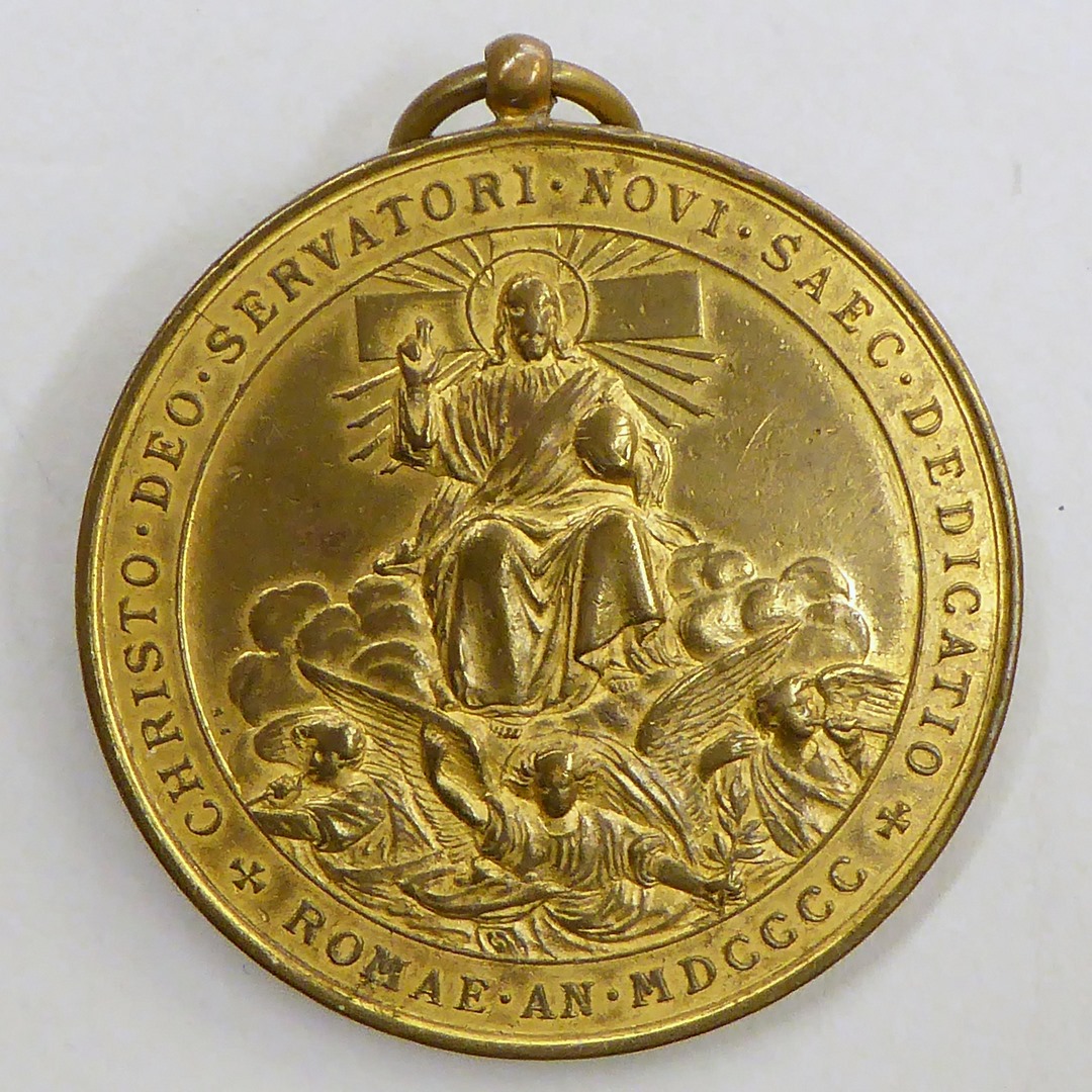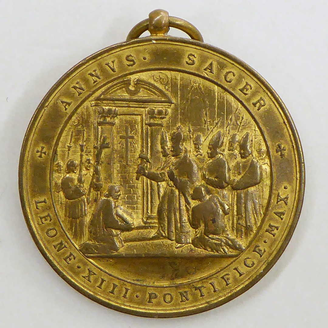 Gedenkpenning met opening H. Deur door paus Leo XIII, kz. Christus op wolken, Laatste Oordeel