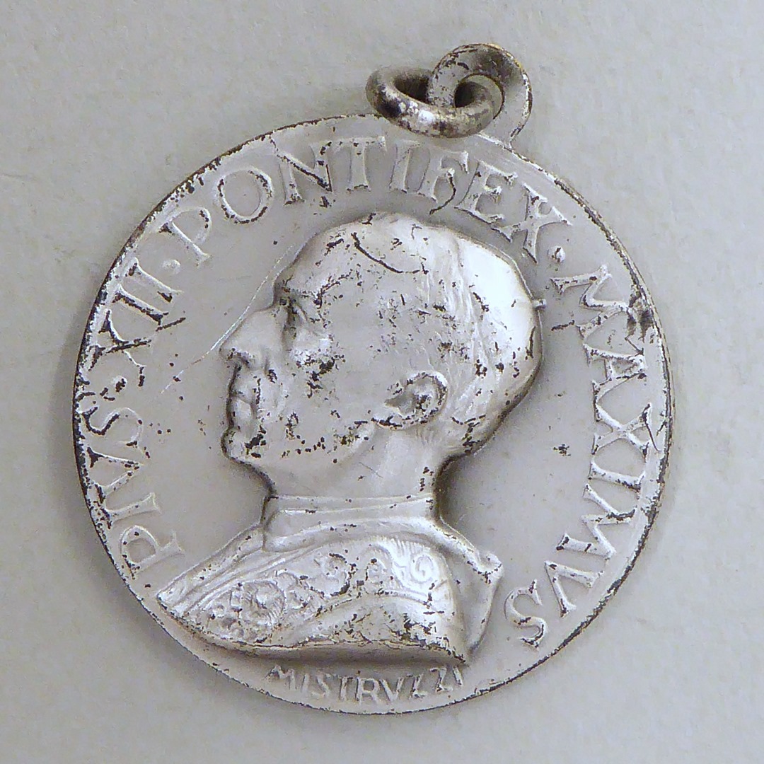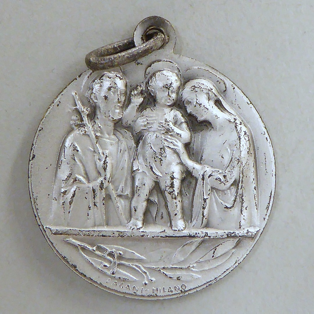 Draagpenning met H. Familie, kz. portret Pius XII met "Pius XII. Pontifex Maximus"