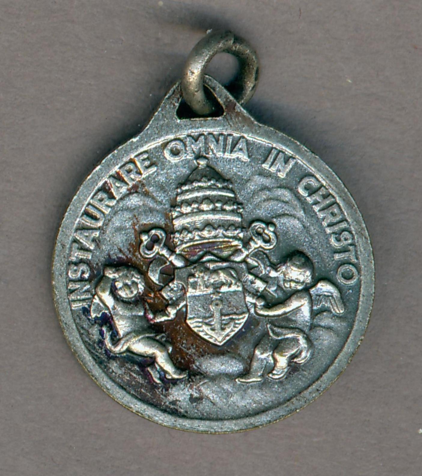 Draagpenning zaligverklaring paus Pius X met portret, kz. wapen