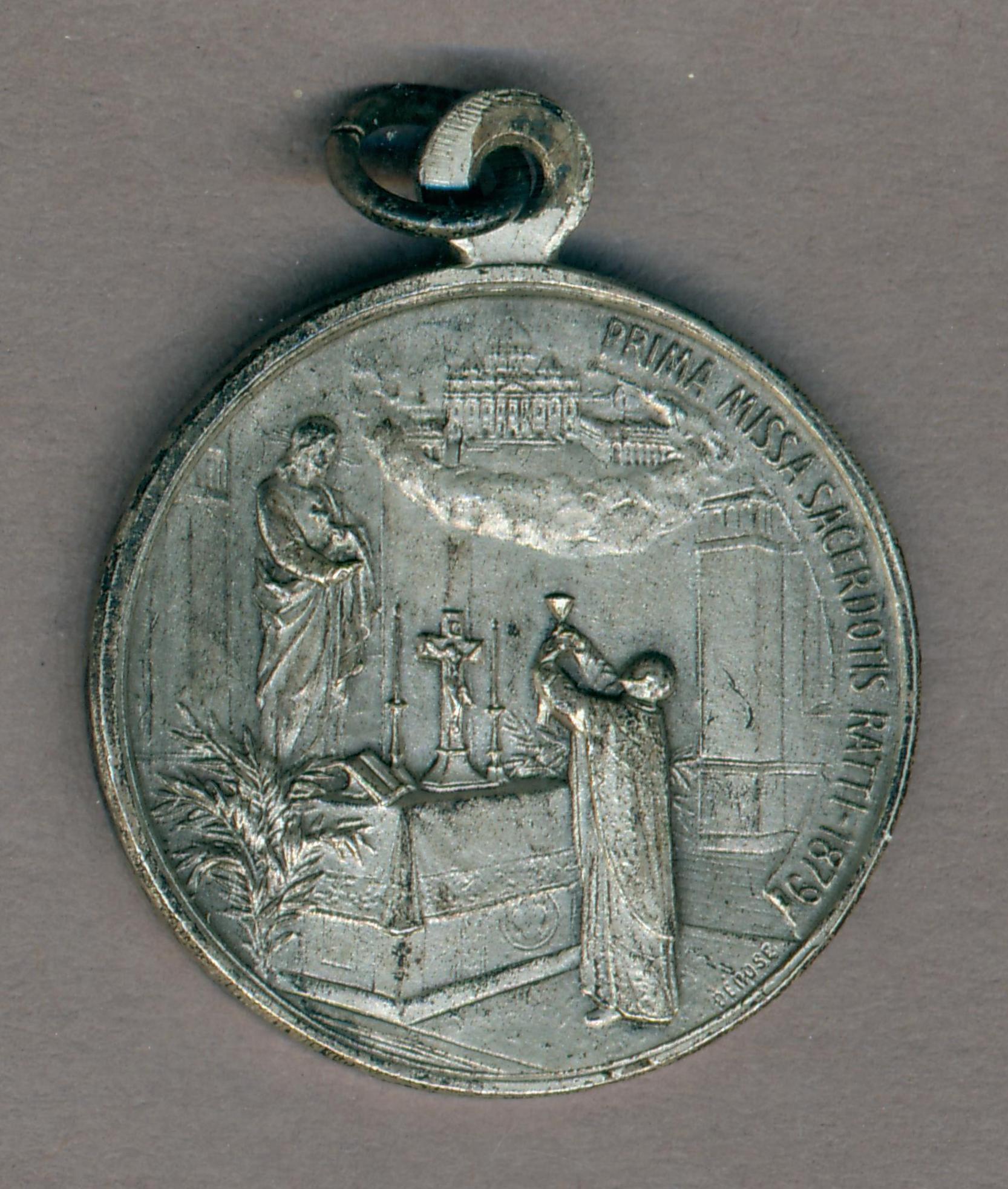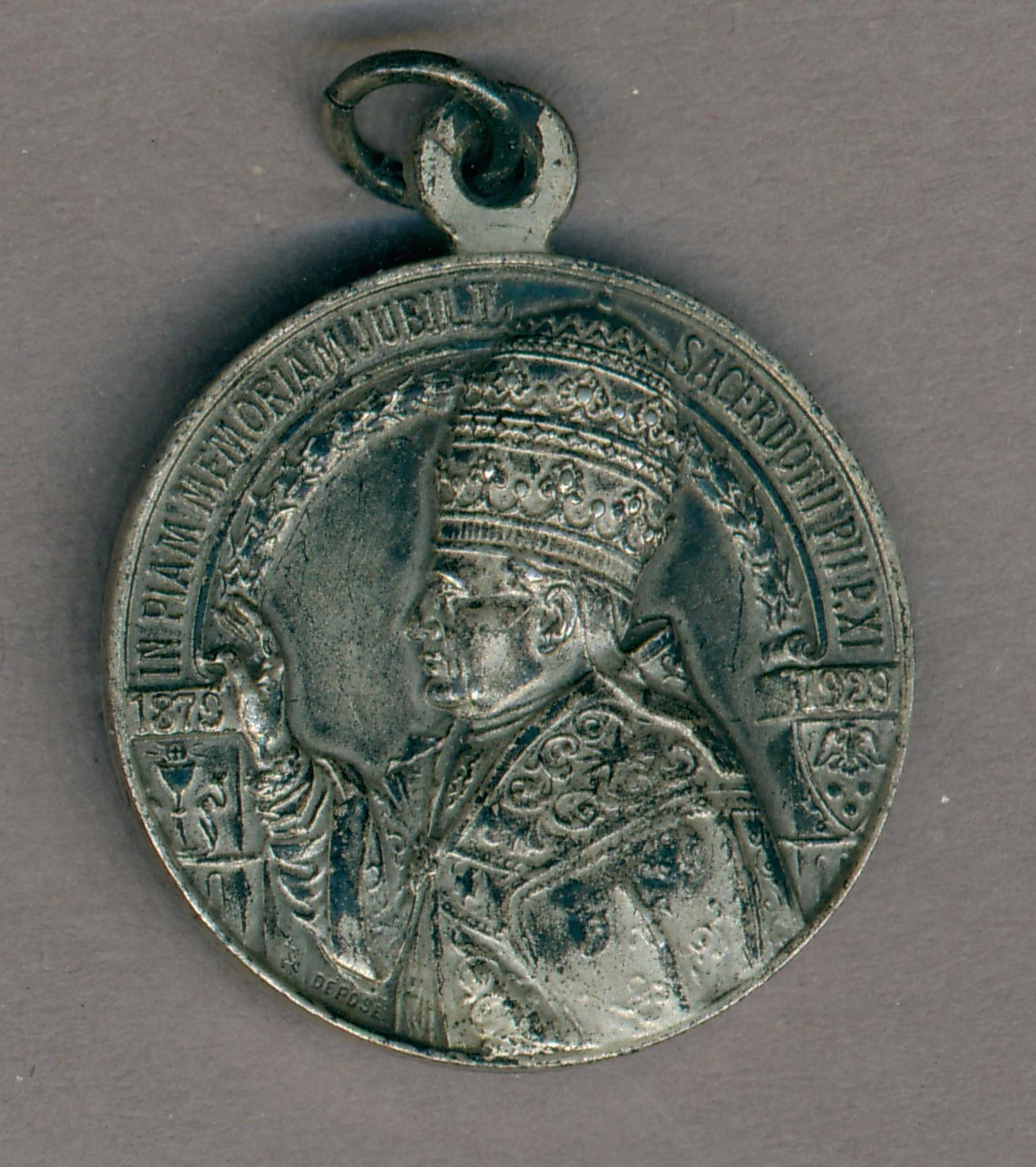 Draagpenning 50-jarig priesterfeest paus Pius XI (1922-1939) met portret met tiara, kz. eerste H. mis