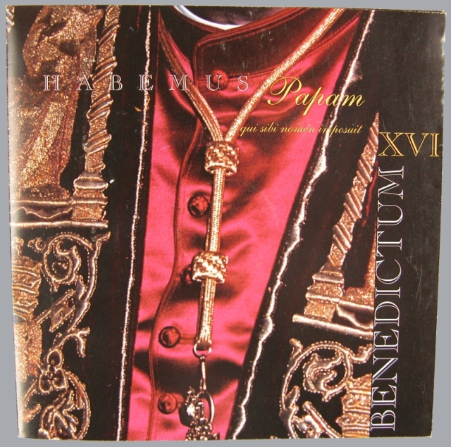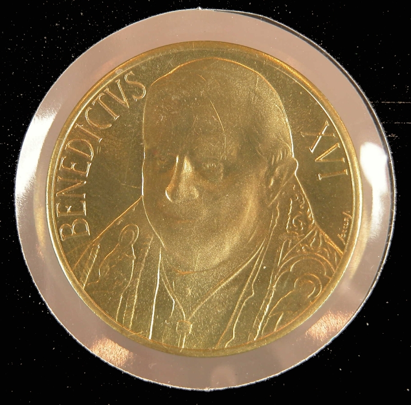 Mapje met "Habemus papam qui sibi nomen ..." met ingesloten pauspenning, goudkleurig, met portret paus Benedictus XVI (2005-2013), kz. Sint Pietersbasiliek