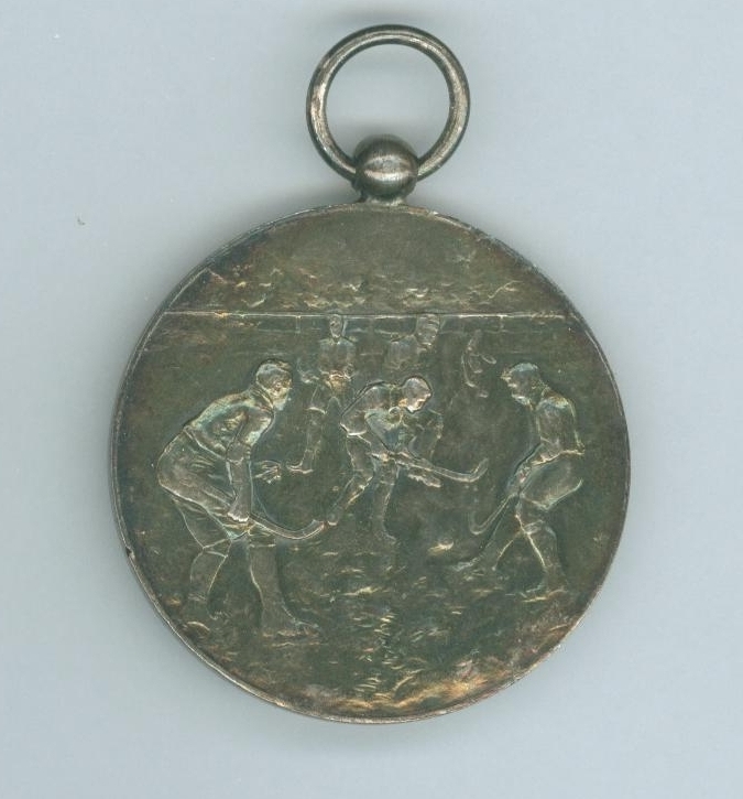 Medaille met hockeyspelers, kz. met "...1895-1945 hockeywedstrijden"