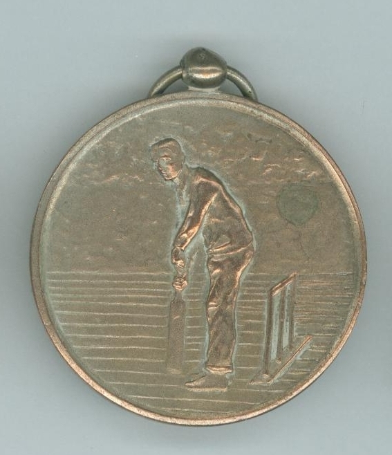 Medaille met cricketspeler, kz. met "Afscheid Katwijk 23-7-'28"
