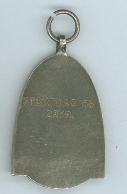 Medaille met twee hardlopers, kz. met "Sportdag '58 2e pr."