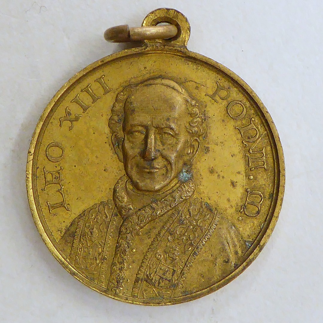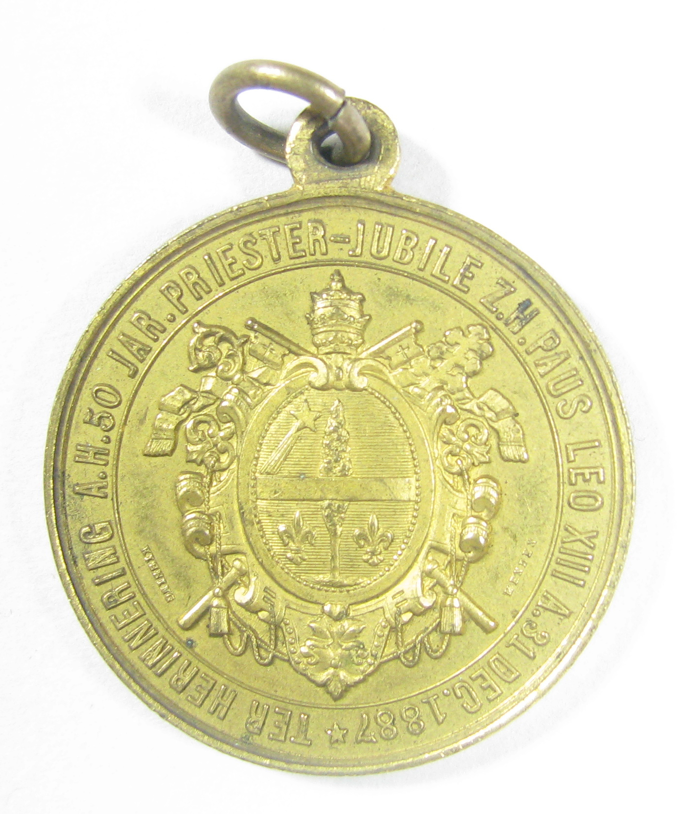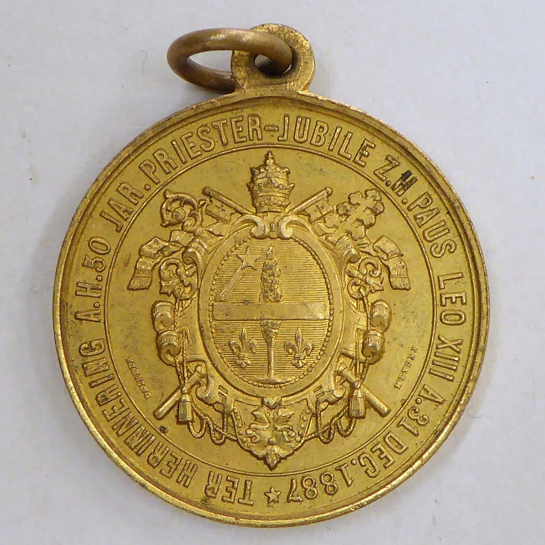 Vz.: Paus Leo XIII, 'Leo XIII Pont. M.' Kz.: Pauselijk wapen, 'Ter herinnering a.h. 50 jar. priester-jubile z.h. paus Leo XIII a. 31 dec. 1887'