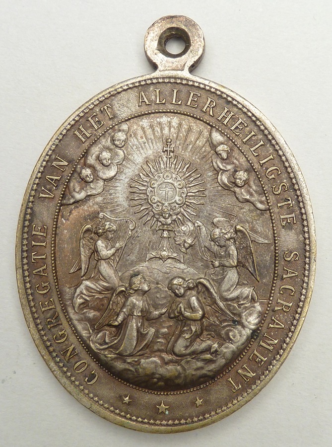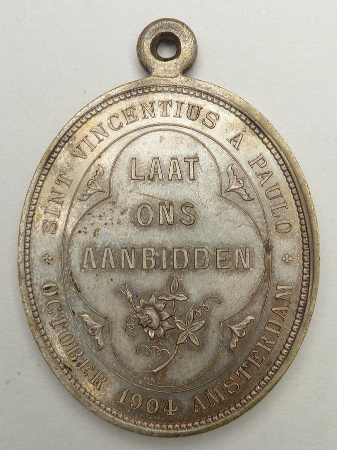 Lidmaatschapspenning Congregatie van het Allerheiligste Sacrament, kz. met "Sint Vincentius a Paolo october 1904 Amsterdam ..."