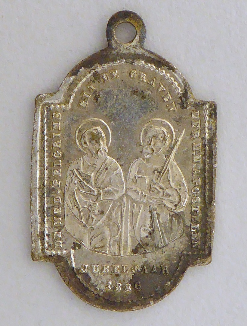 Scapulierpenning met paus Leo XIII, kz. Petrus, Paulus, "De Nederlandse pelgrims..."
