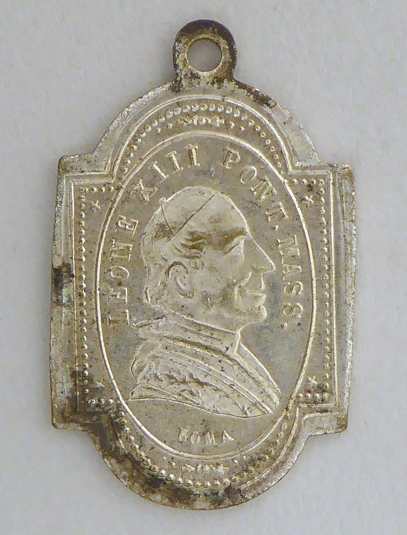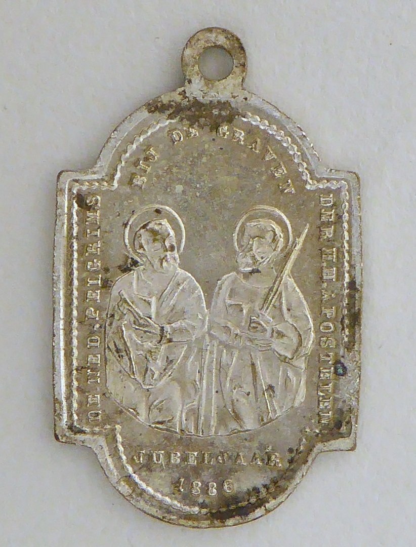 Scapulierpenning met paus Leo XIII, kz. Petrus, Paulus, "De Nederlandse pelgrims..."