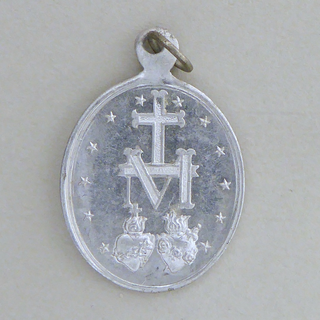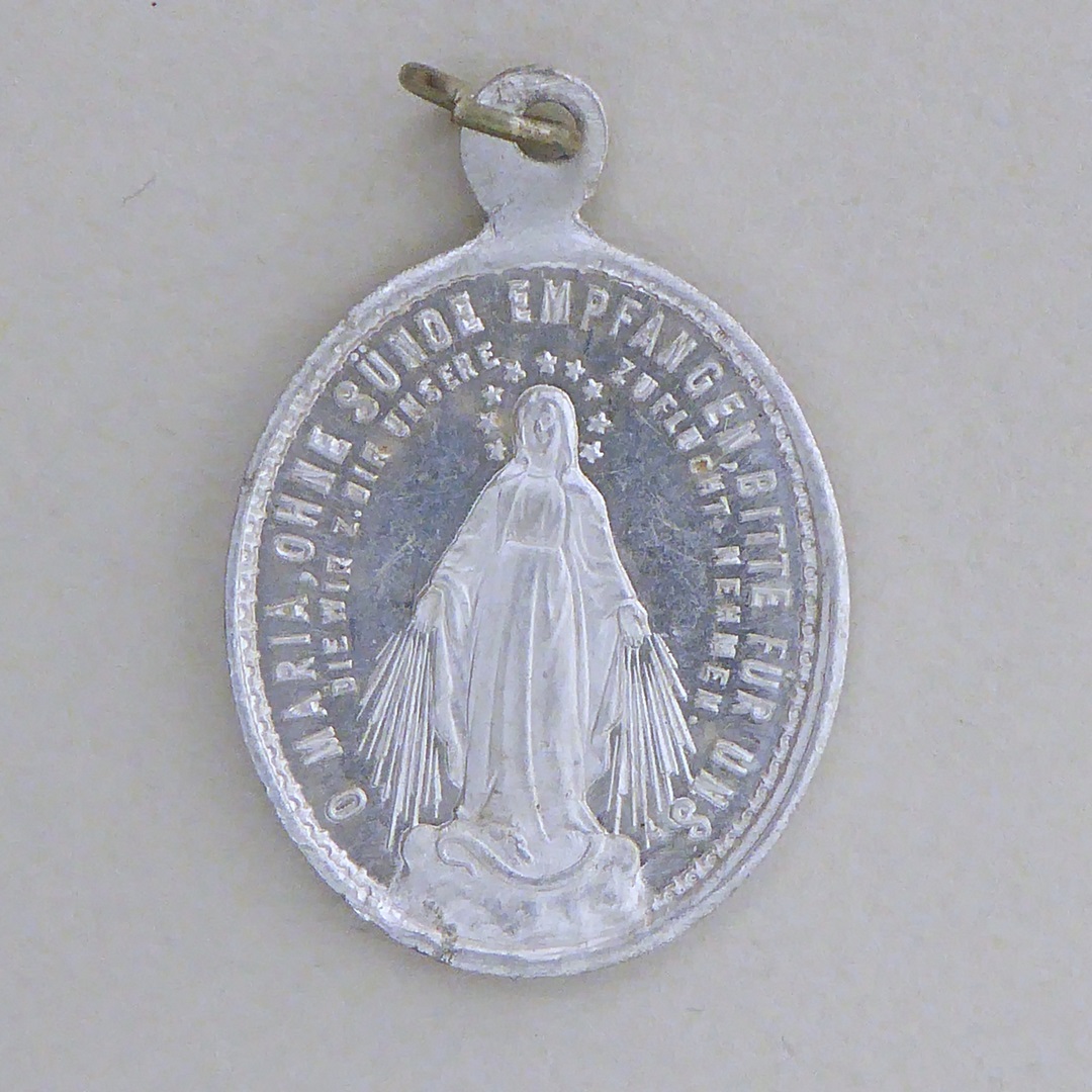 Scapulierpenning, ovaal, 'Miraculeuze medaille', met Maria Immaculata, kz. Maria-monogram