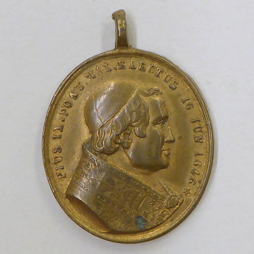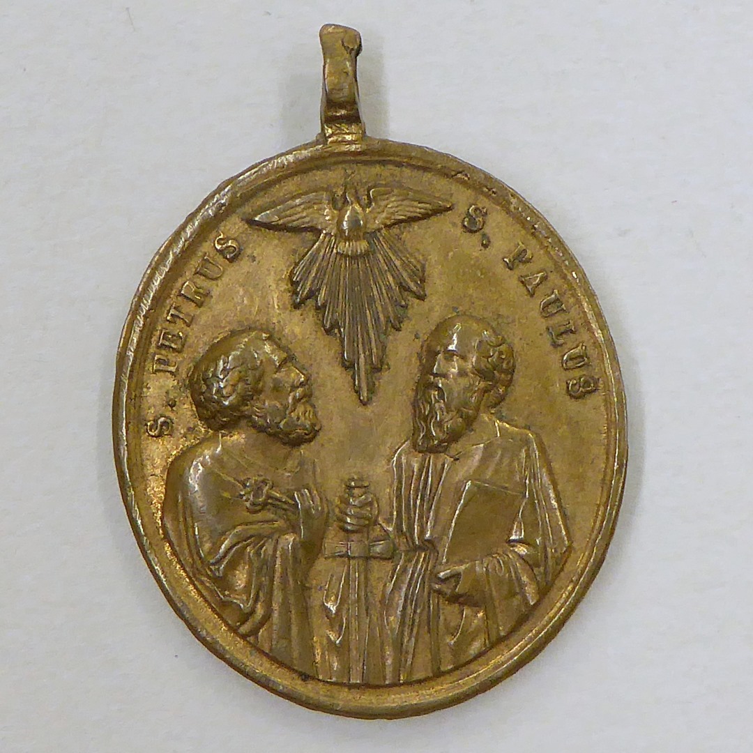 Pauspenning, ovaal, met portret paus Pius IX, kz. Petrus en Paulus