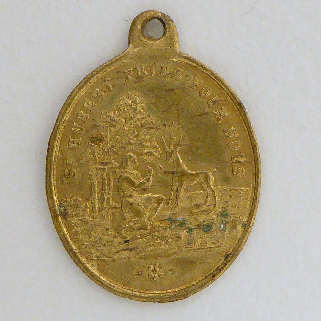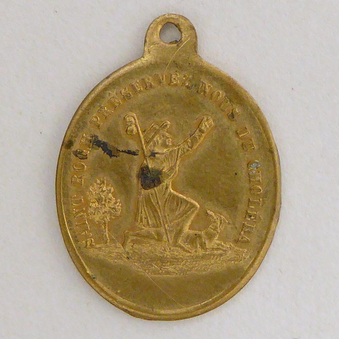 Scapulierpenning tegen cholera, ovaal, met St. Rochus, kz. St. Hubertus