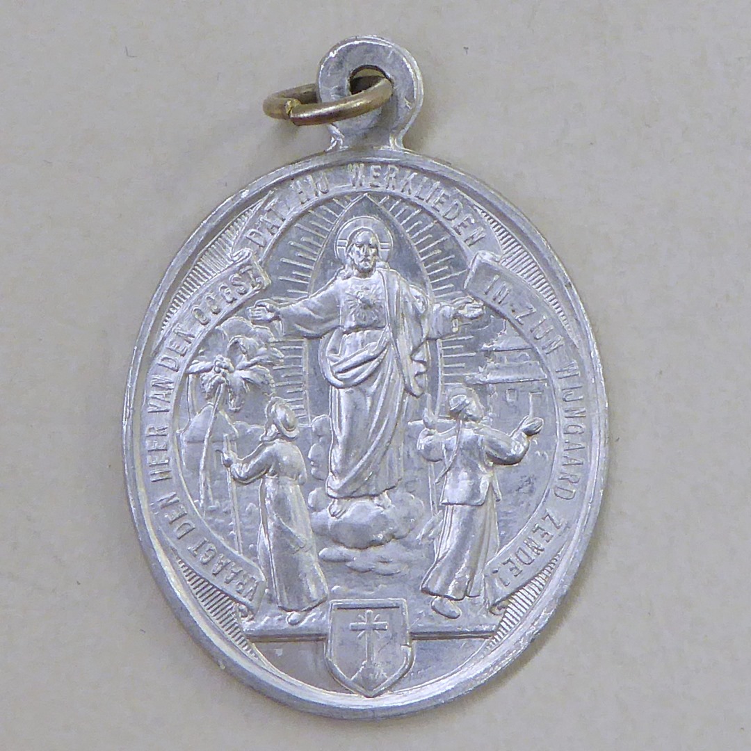 Scapulierpenning met aanbidding der herders, kz. Christus in de wijngaard