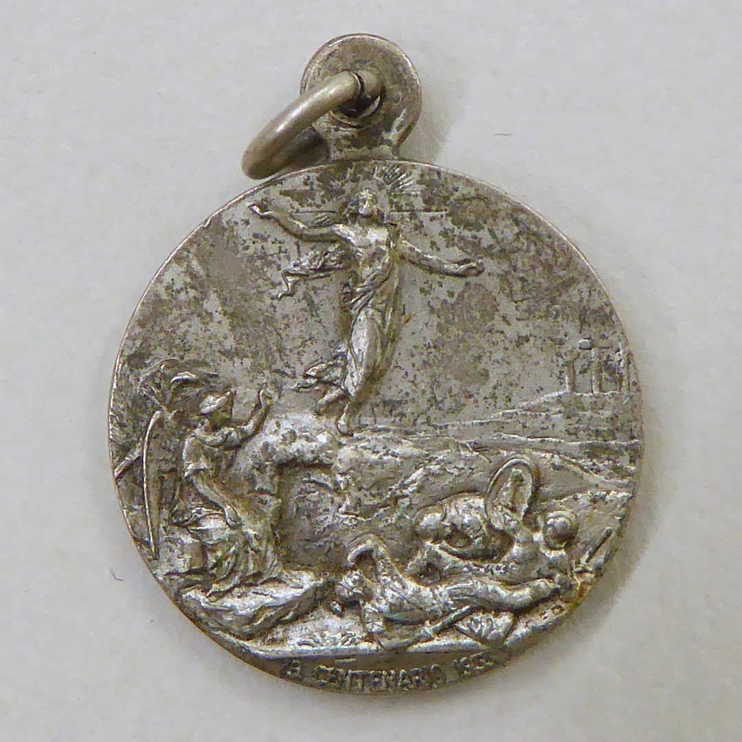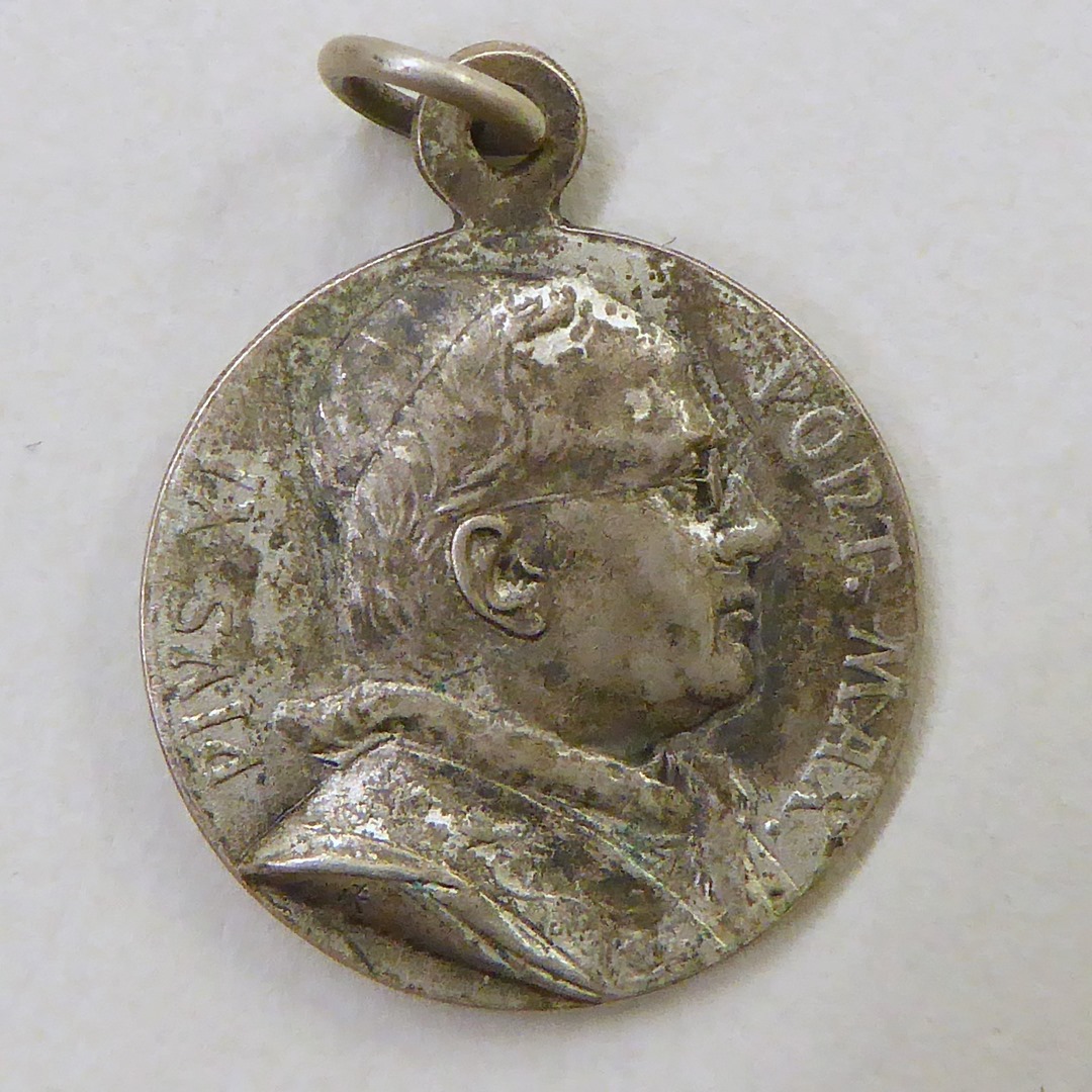 Scapulierpenning met Pius XI, kz. engel bij het geopende graf met Christus en twee wachters