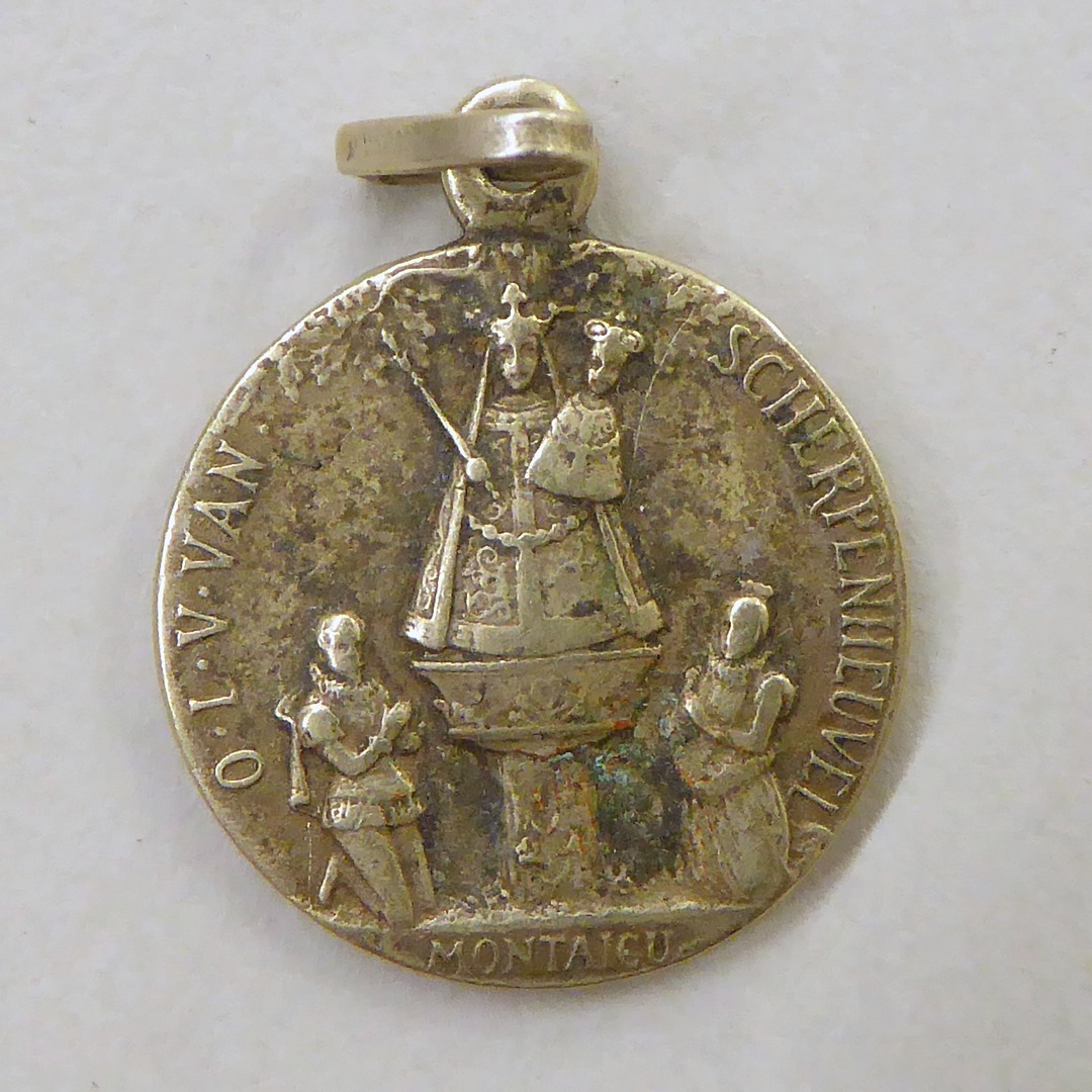 Scapulierpenning met O.L.V. van Scherpenheuvel, kz. Christus met H. Hart