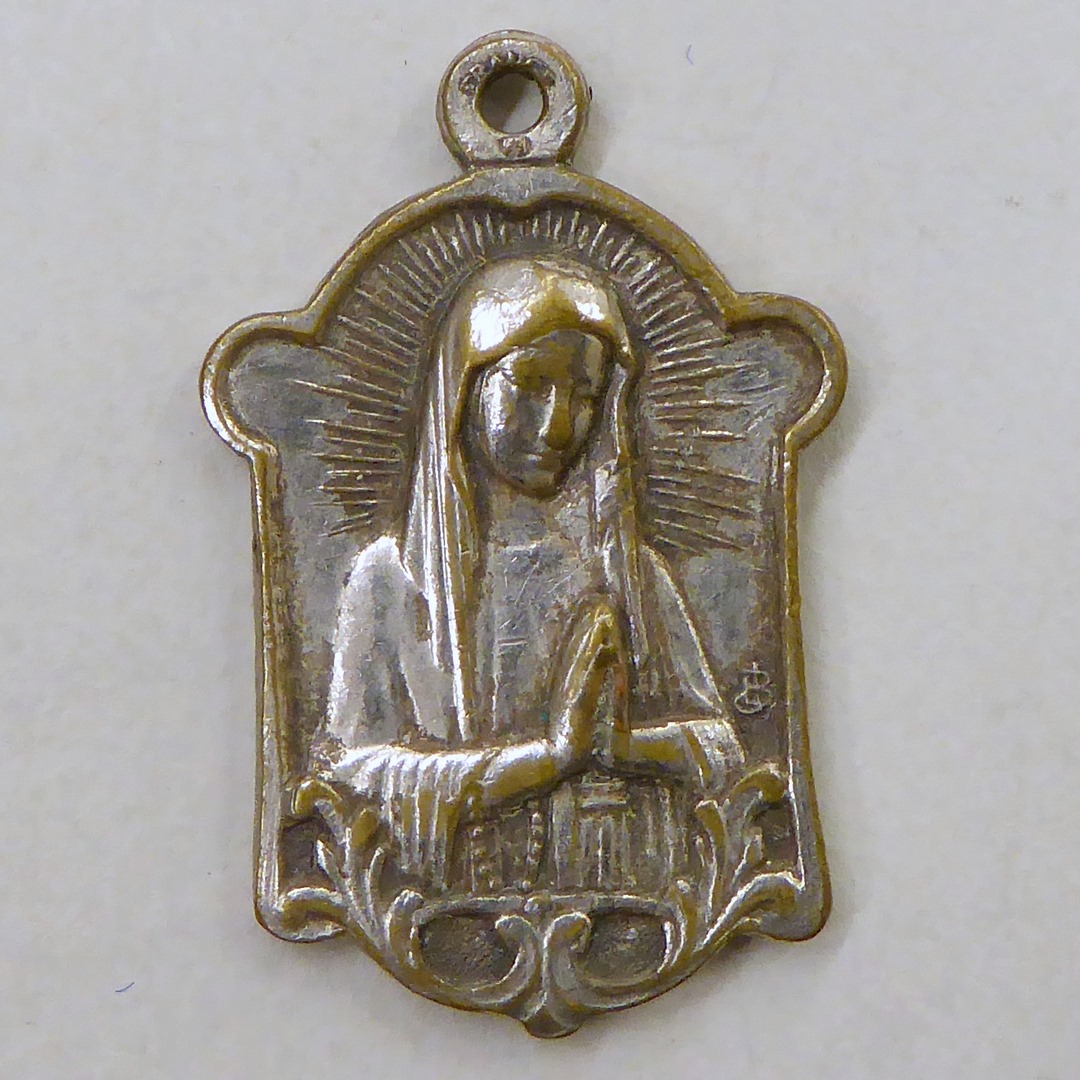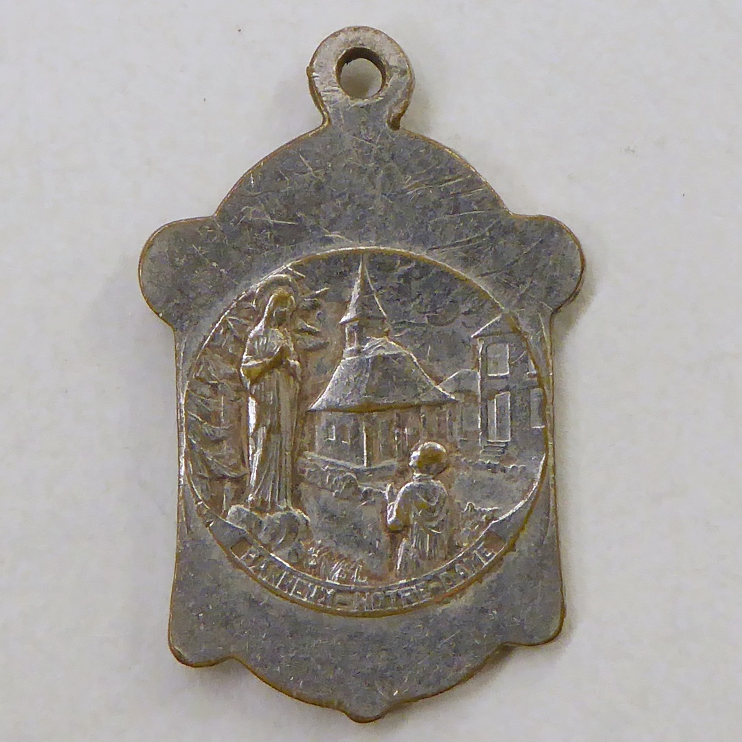 Scapulierpenning met biddende Maria, kz. met "Banlieux-Notre-Dame"