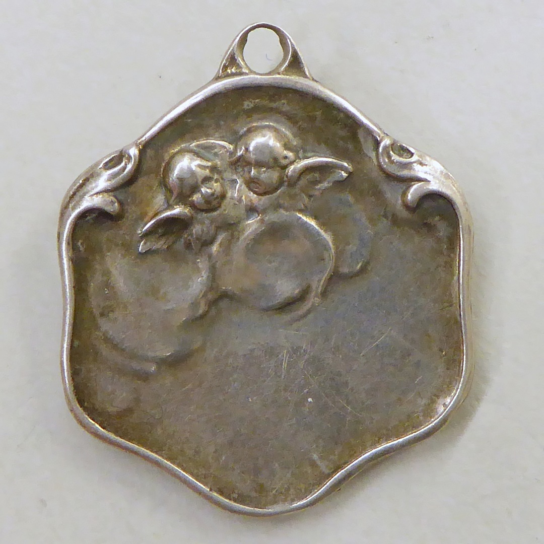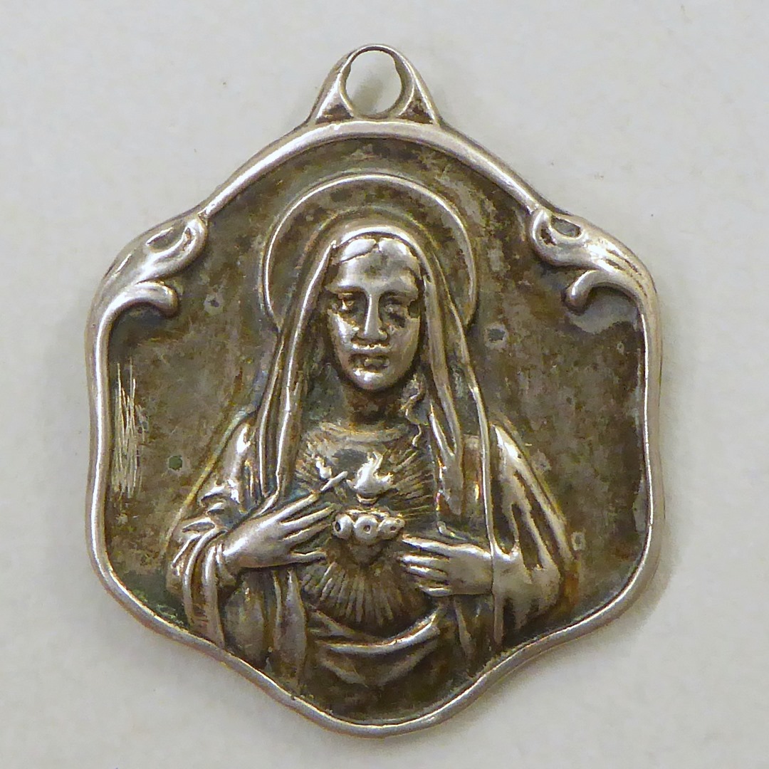 Scapulierpenning met Maria met H. Hart, kz. engeltjes