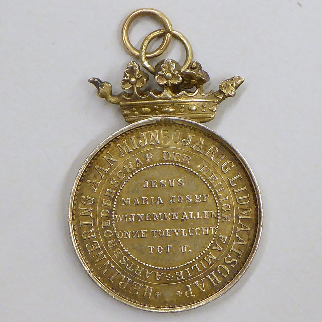 Draagpenning Aartsbroederschap H. Familie, met kroon, kz. "Herinnering ... 50-jarig lidmaatschap"