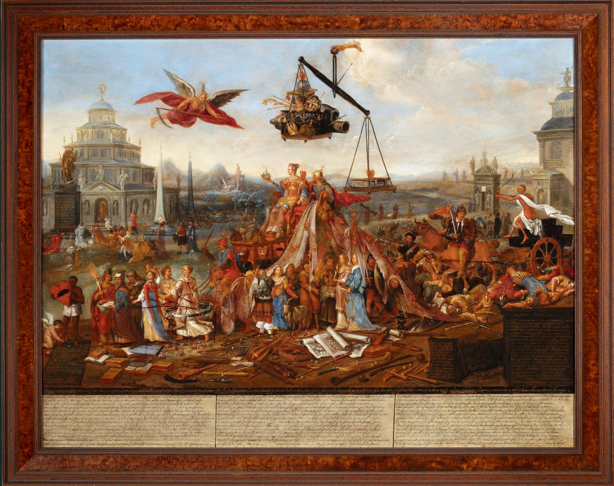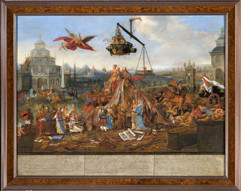 Triompf van werelts rijck, allegorische voorstelling van de brede en de smalle weg